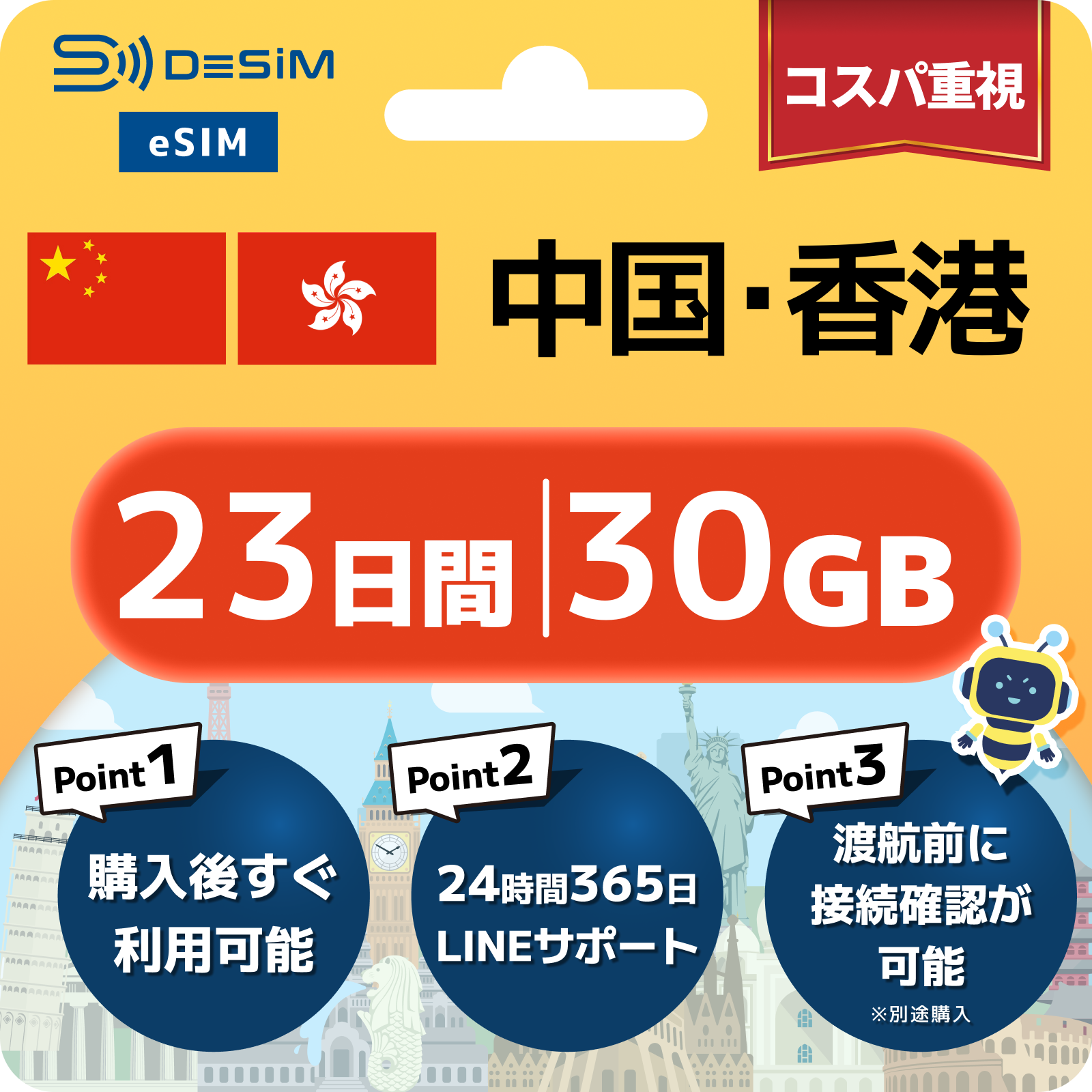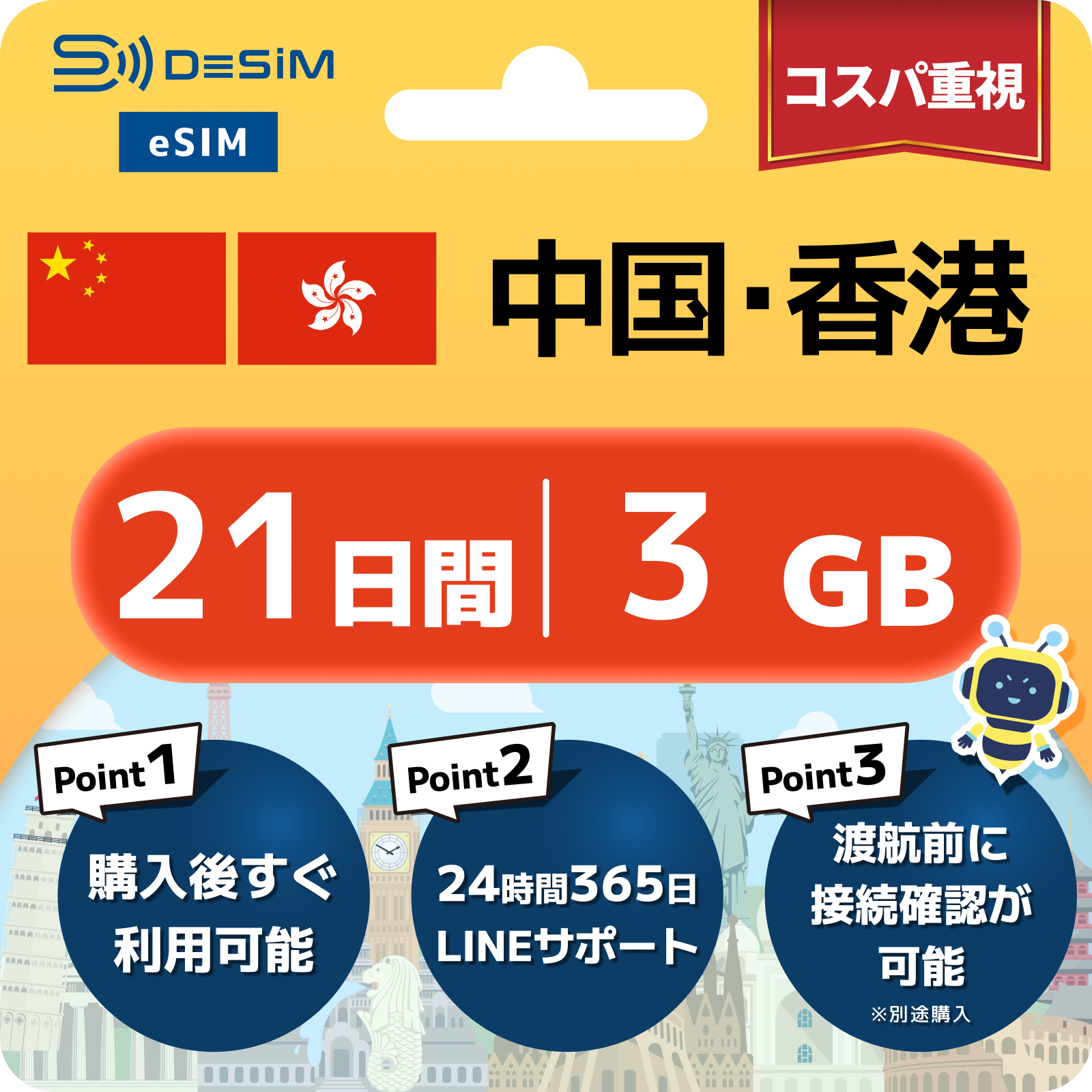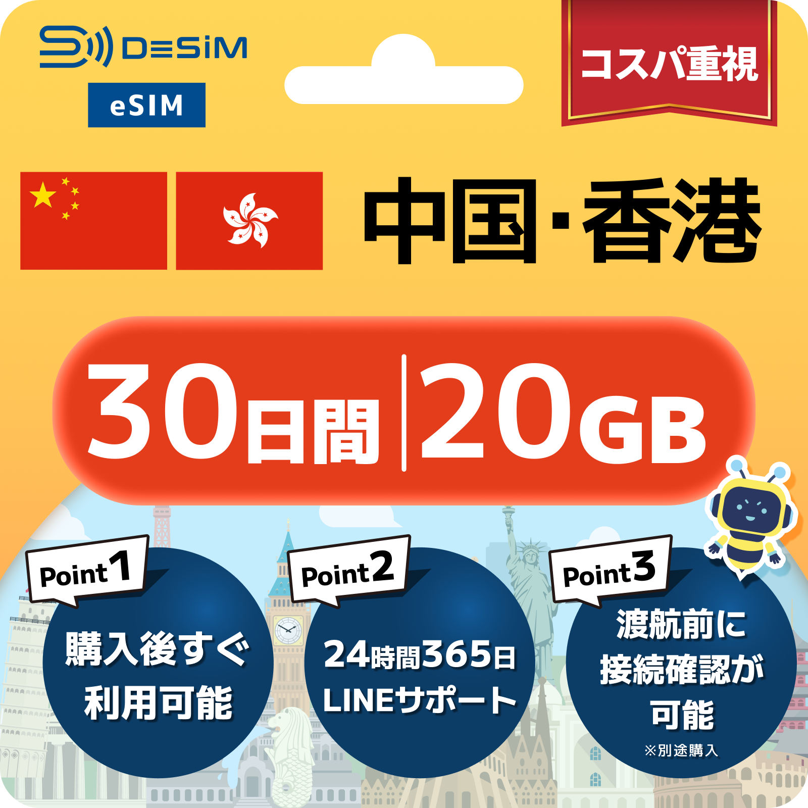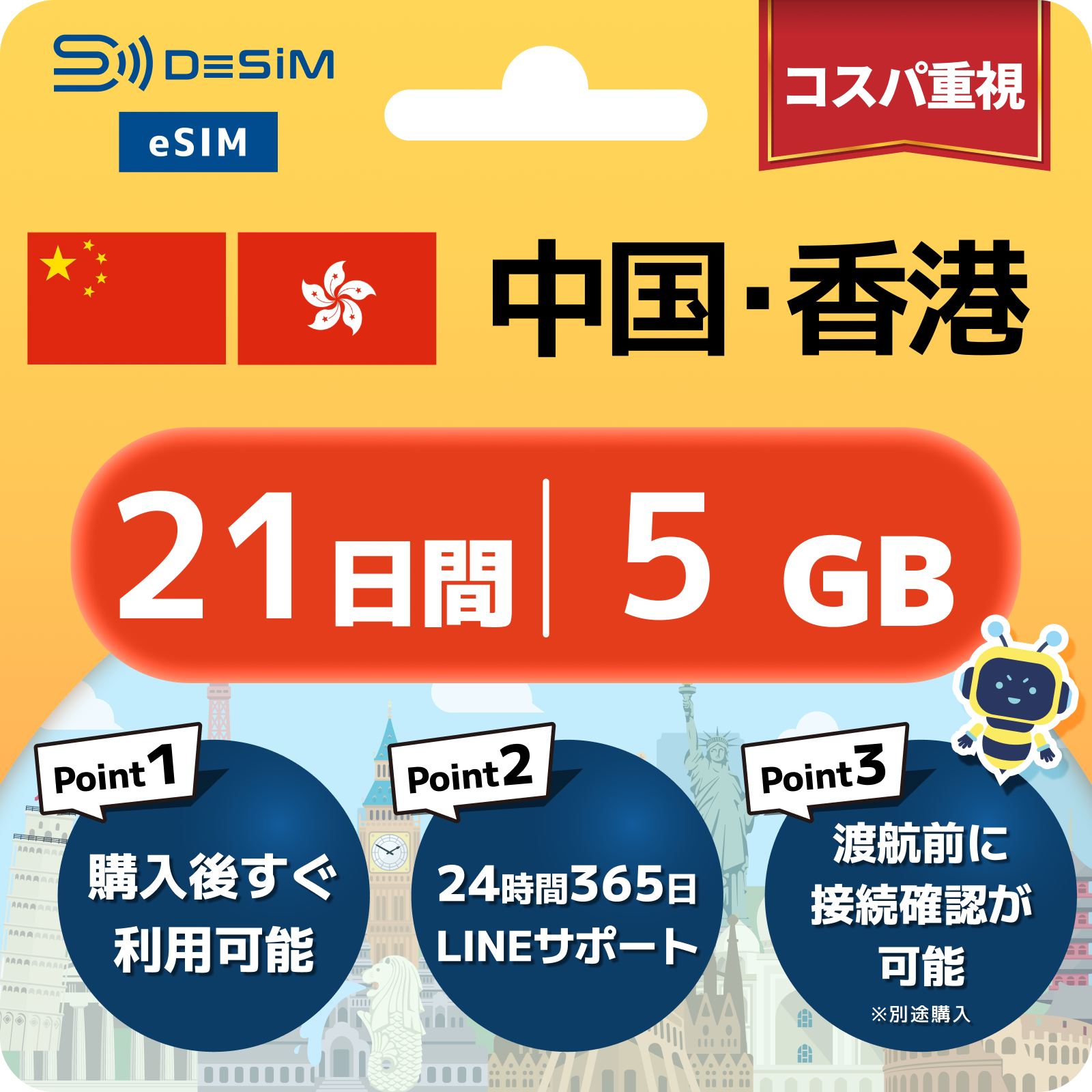 中国・香港 eSIM(21~30日間)500MB~50GB選択可能|VPN不要でYoutubeやSNSが使える!