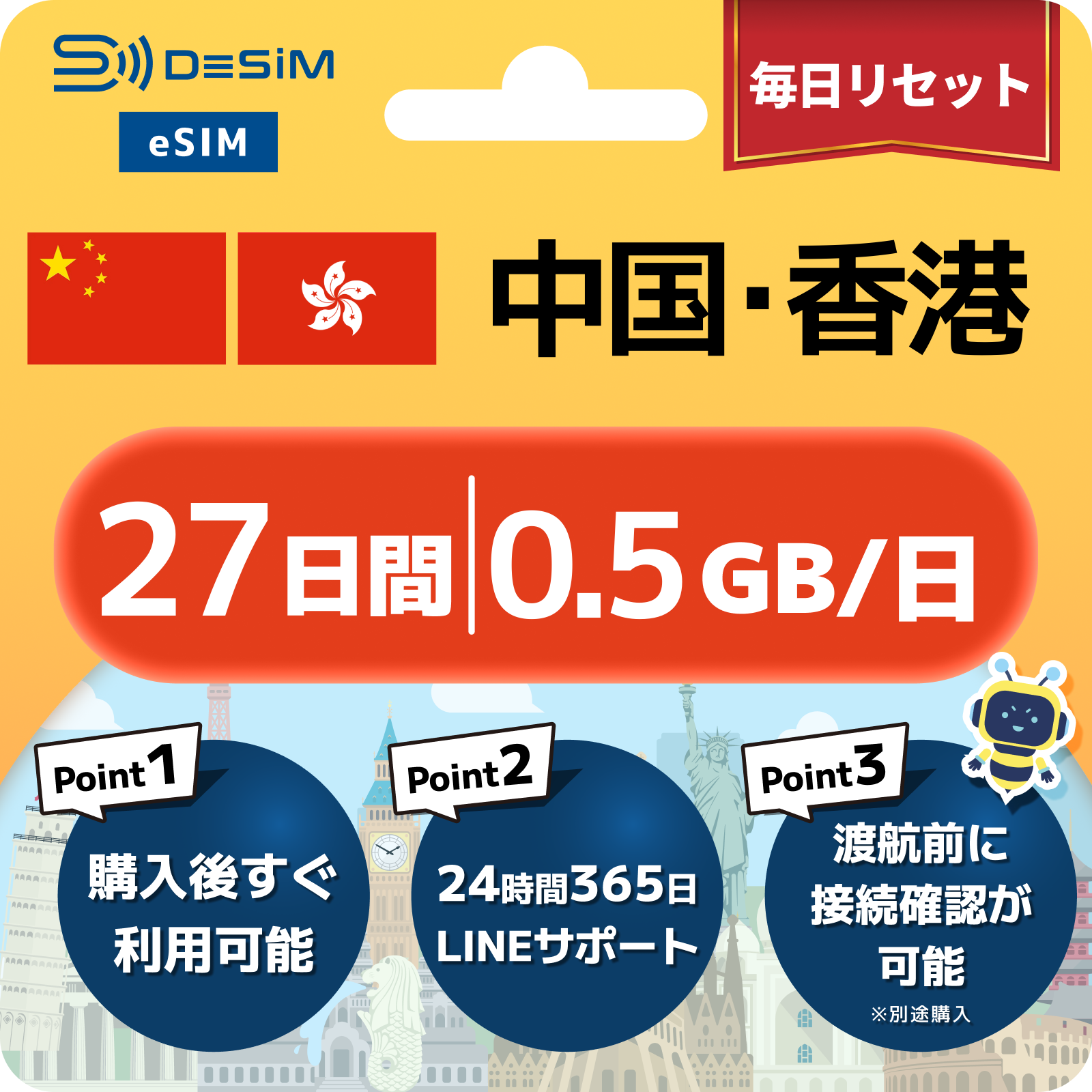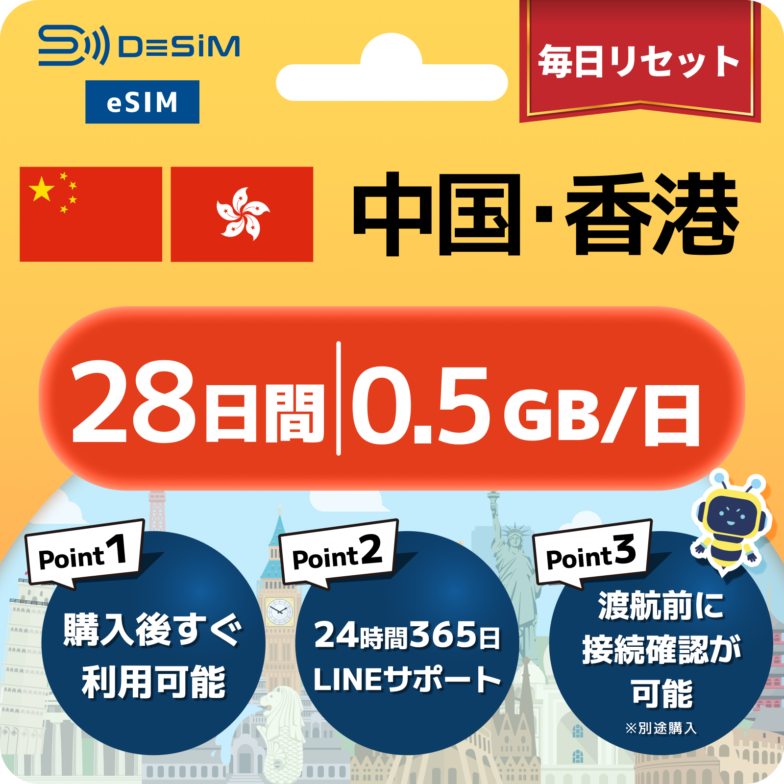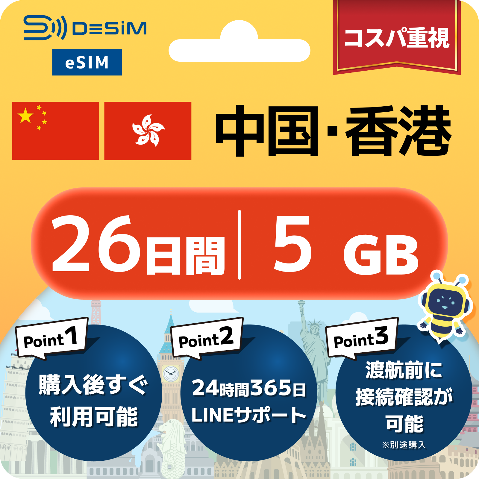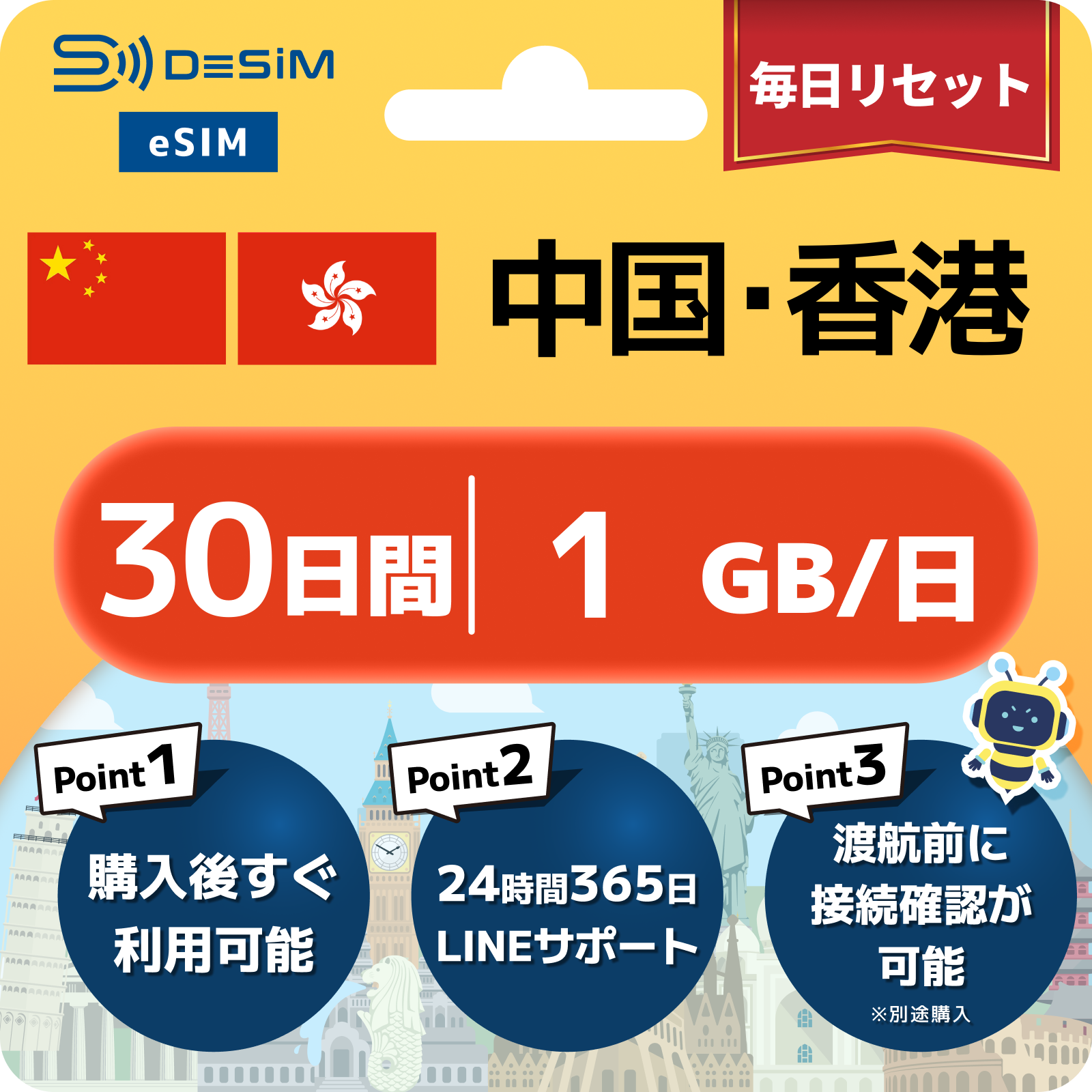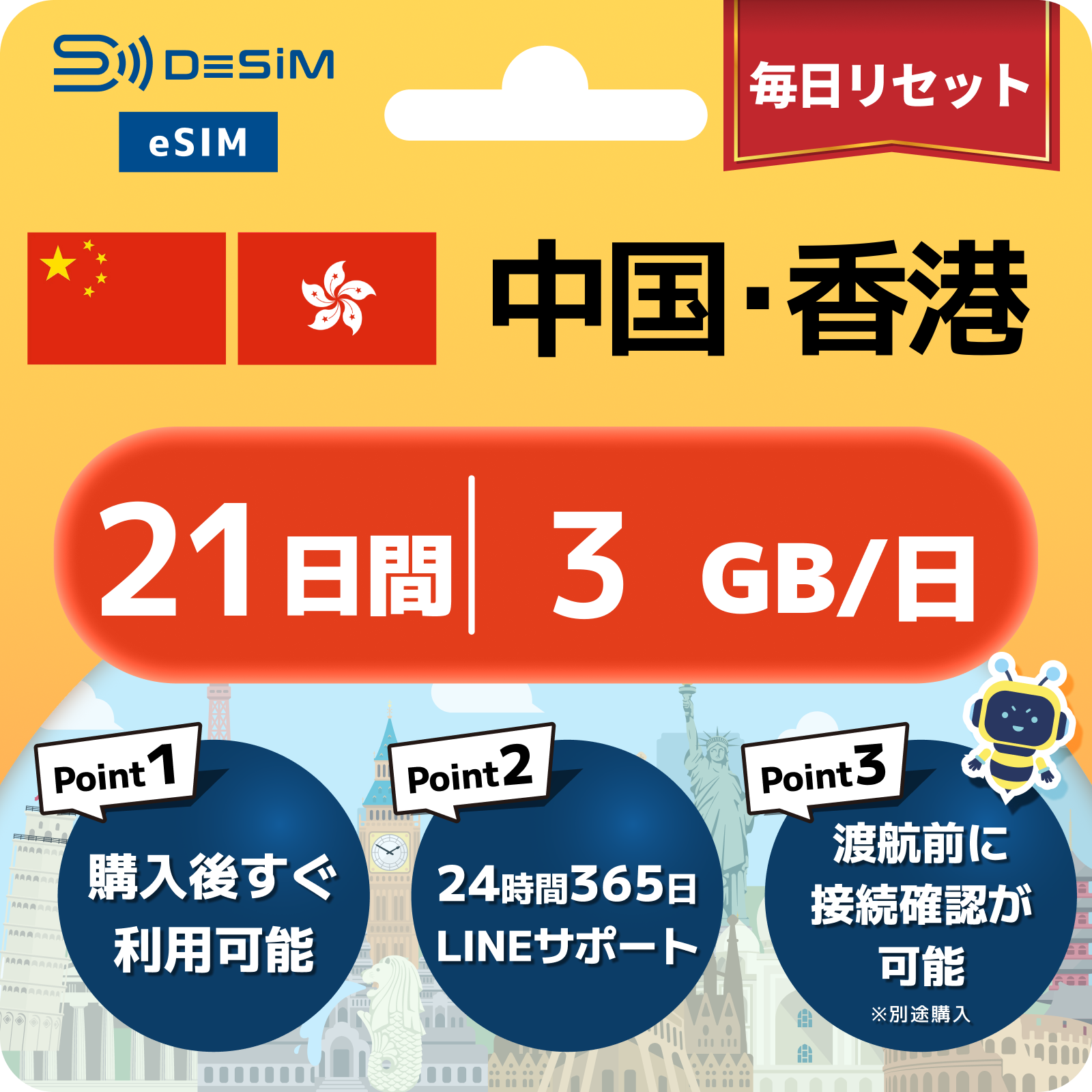 中国・香港 eSIM(21~30日間)500MB~50GB選択可能|VPN不要でYoutubeやSNSが使える!