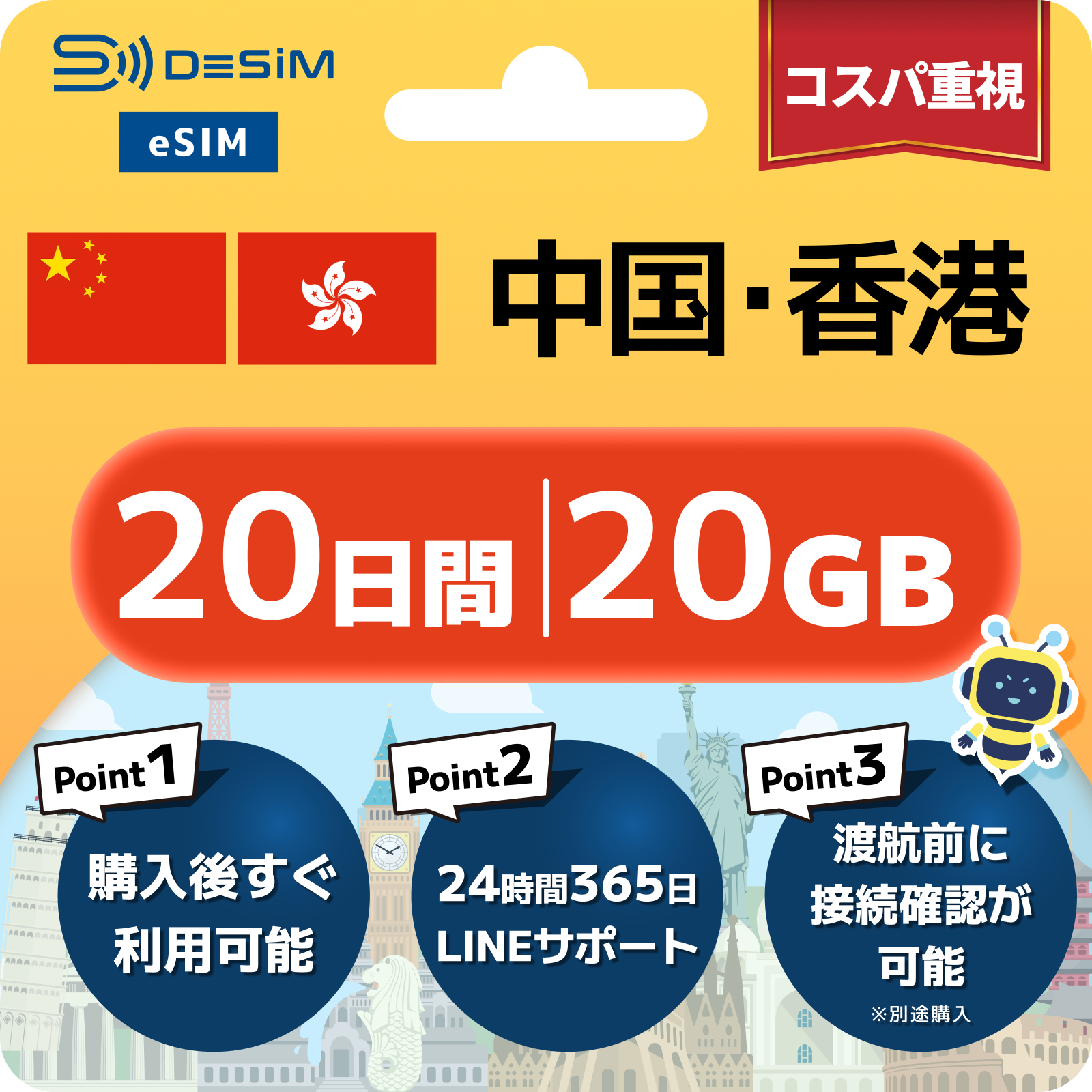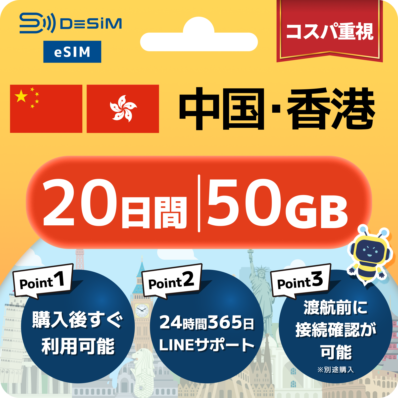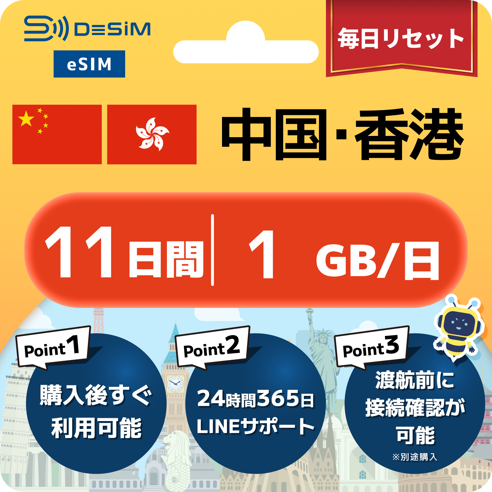 中国・香港 eSIM(11~20日間)500MB~50GB選択可能|VPN不要でYoutubeやSNSが使える!