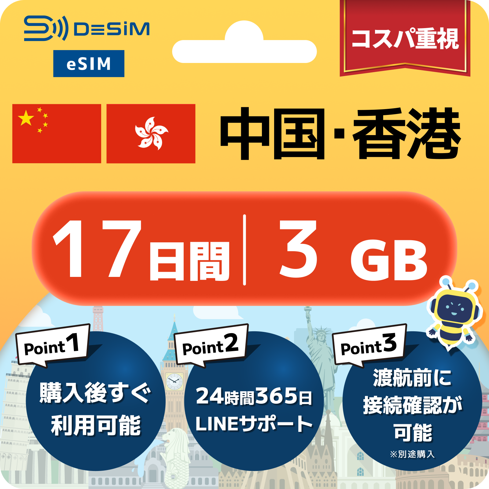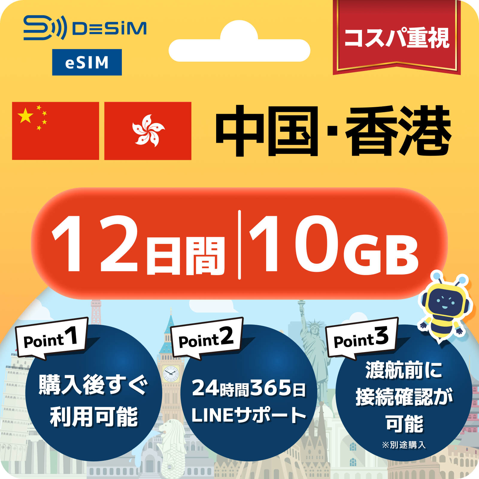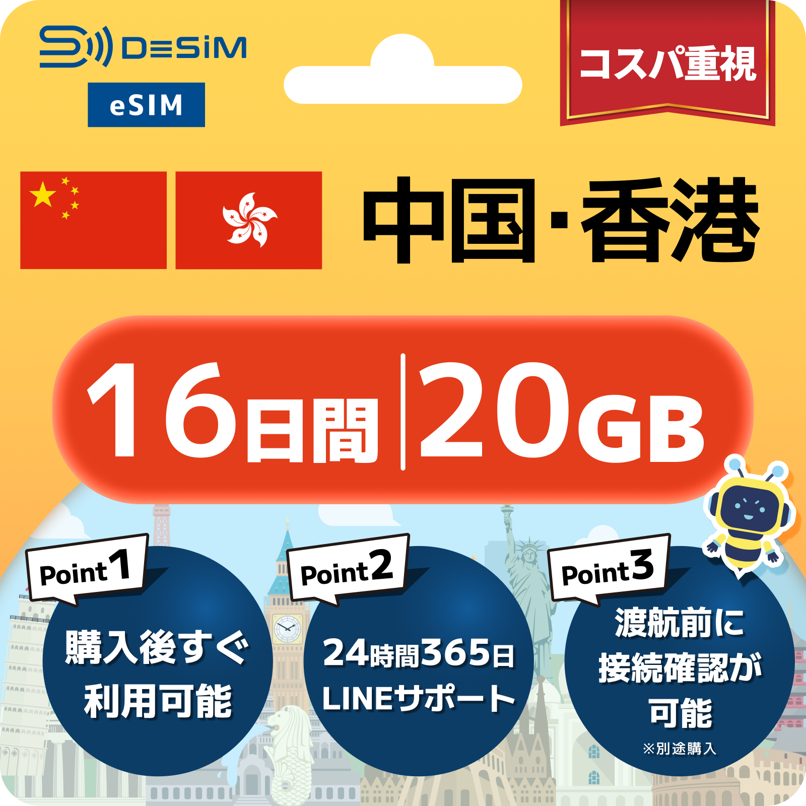 中国・香港 eSIM(11~20日間)500MB~50GB選択可能|VPN不要でYoutubeやSNSが使える!