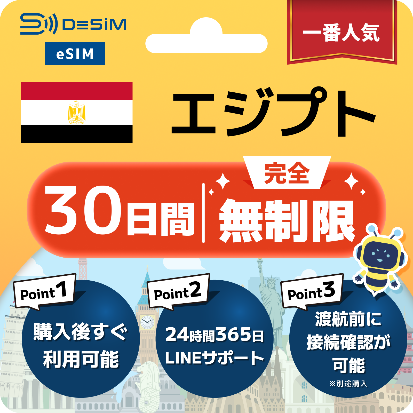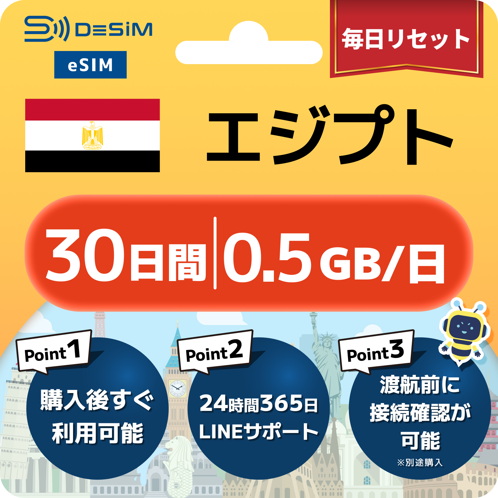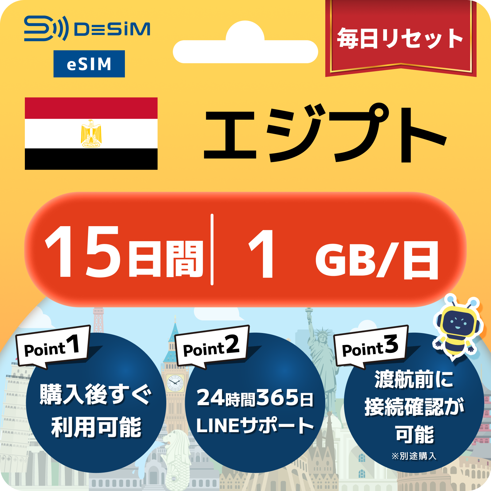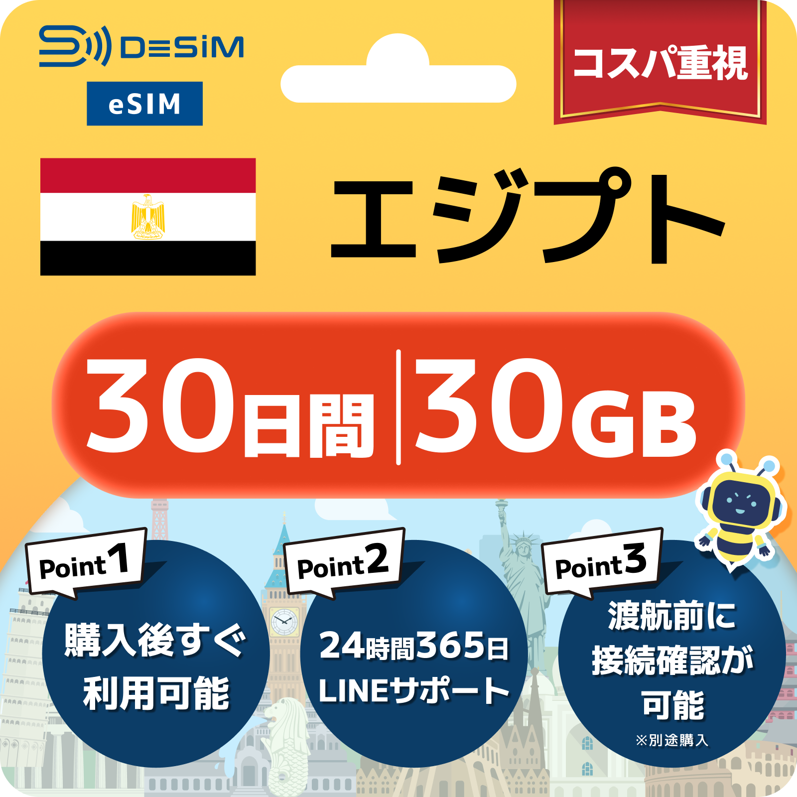 エジプト eSIM 1~30日間