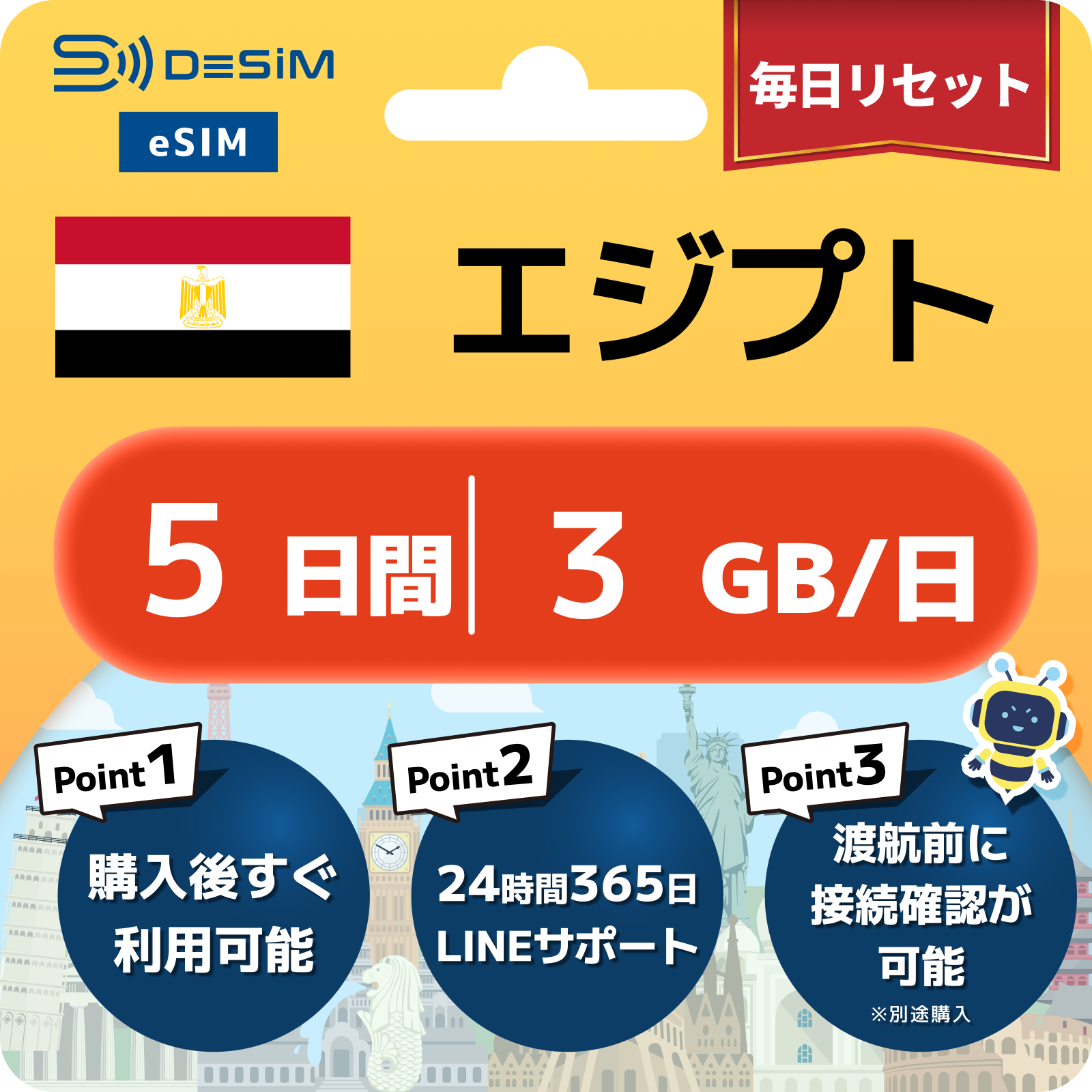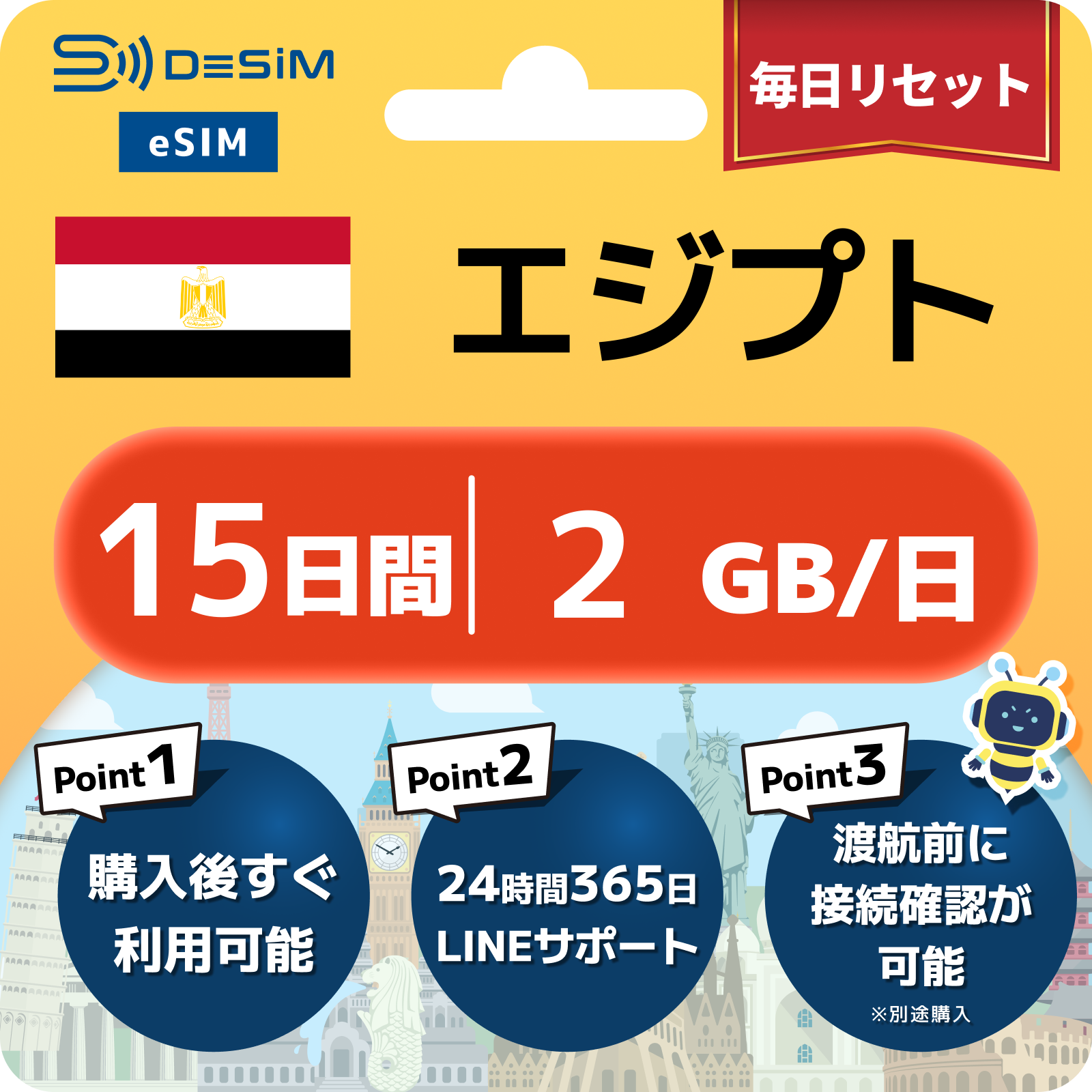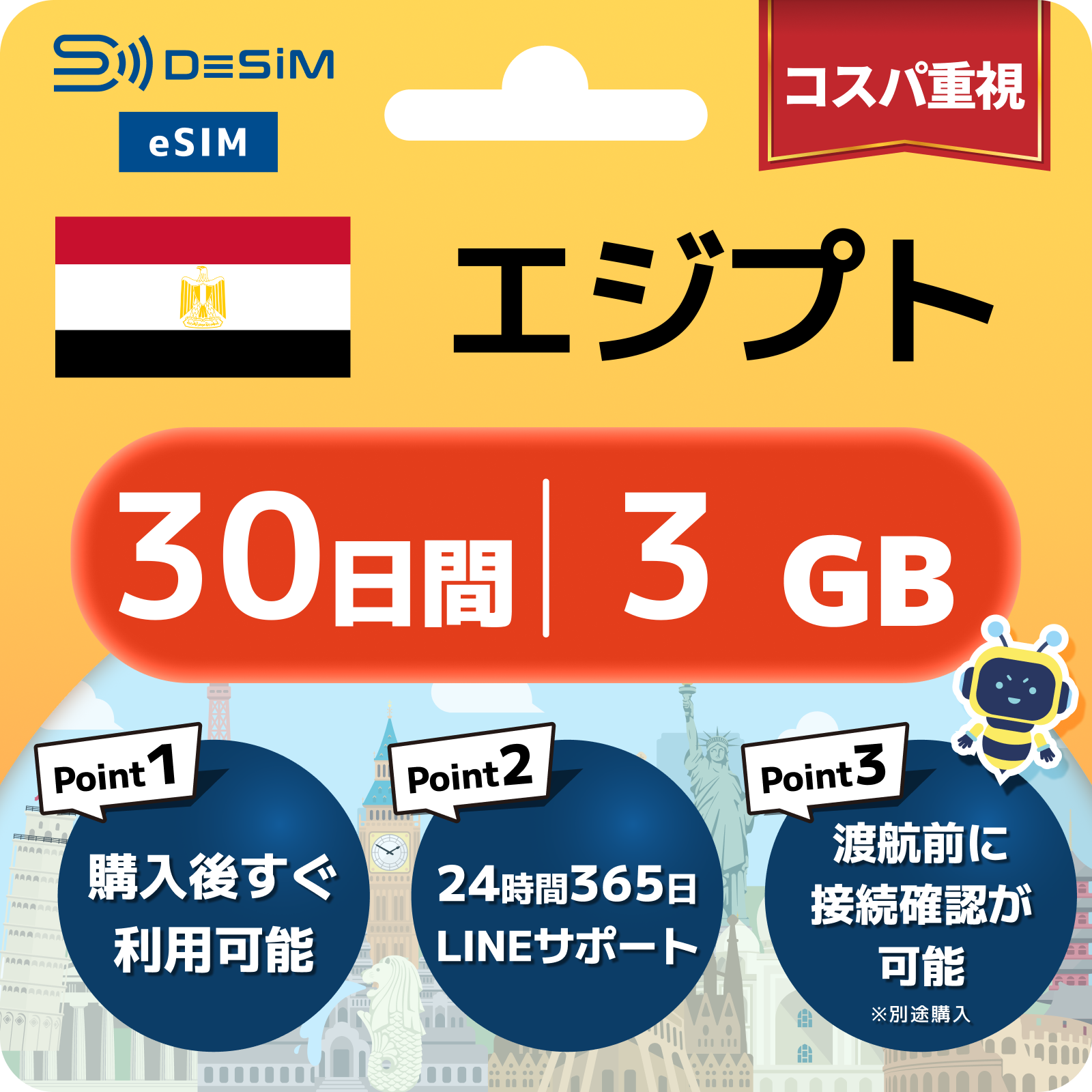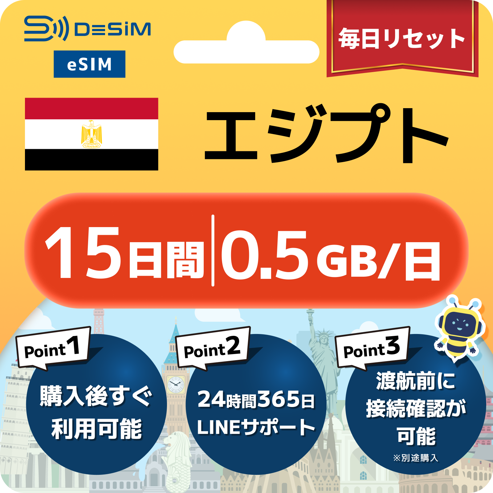 エジプト eSIM 1~30日間