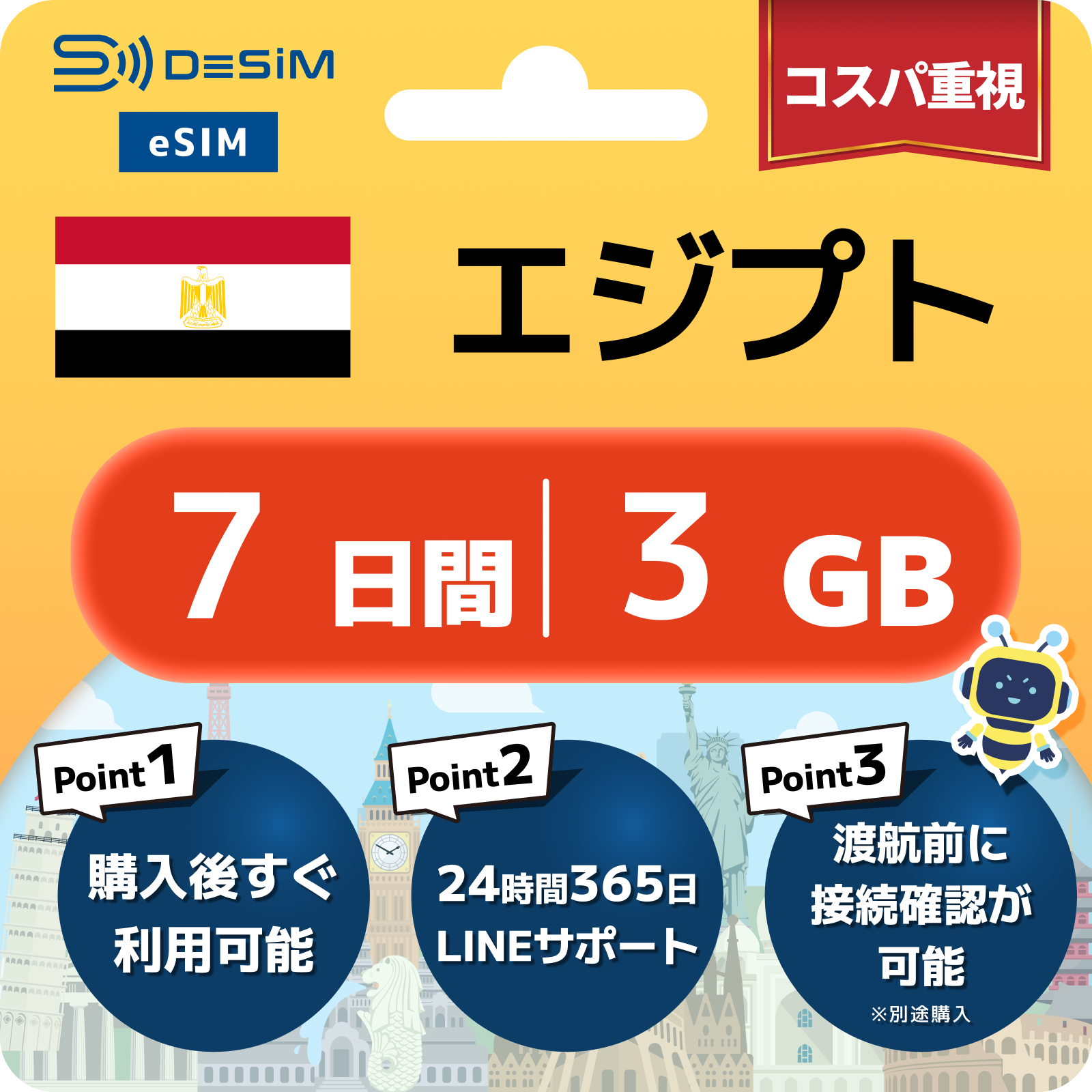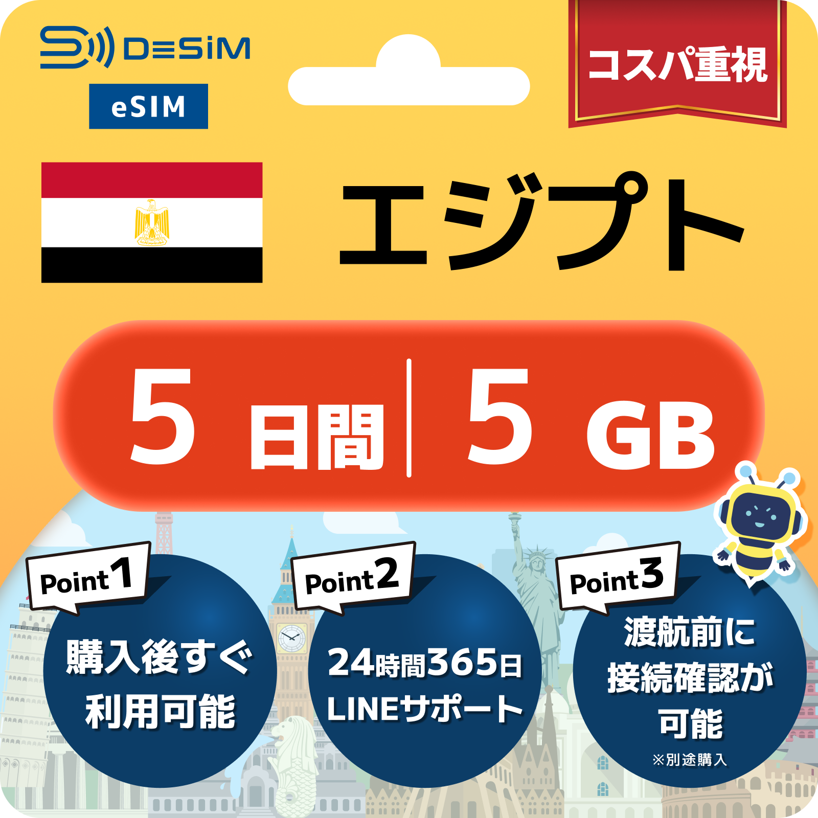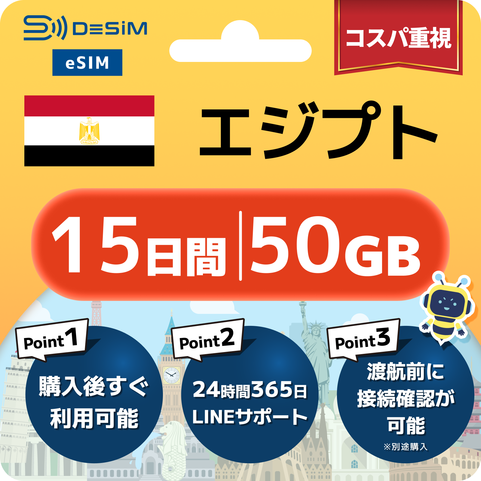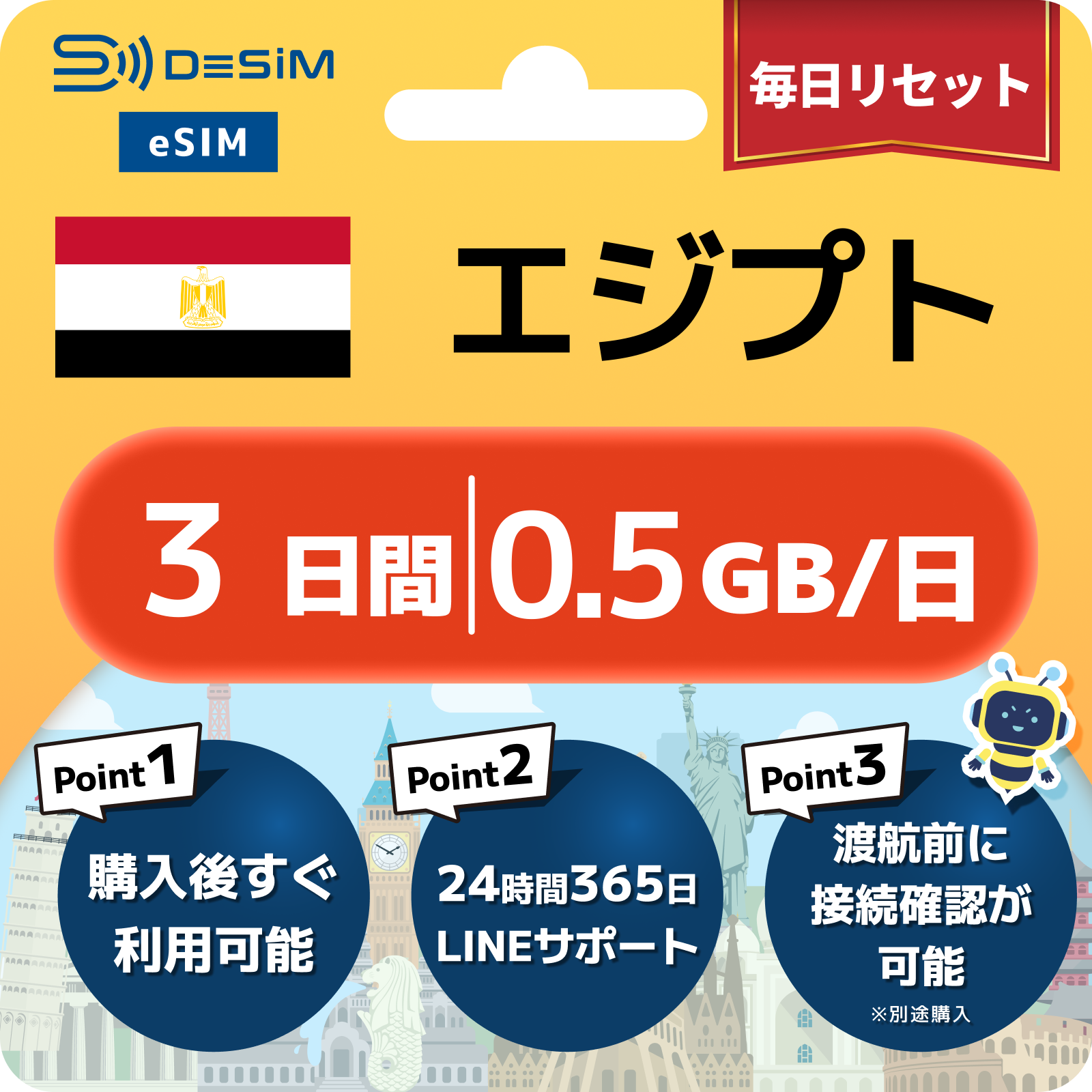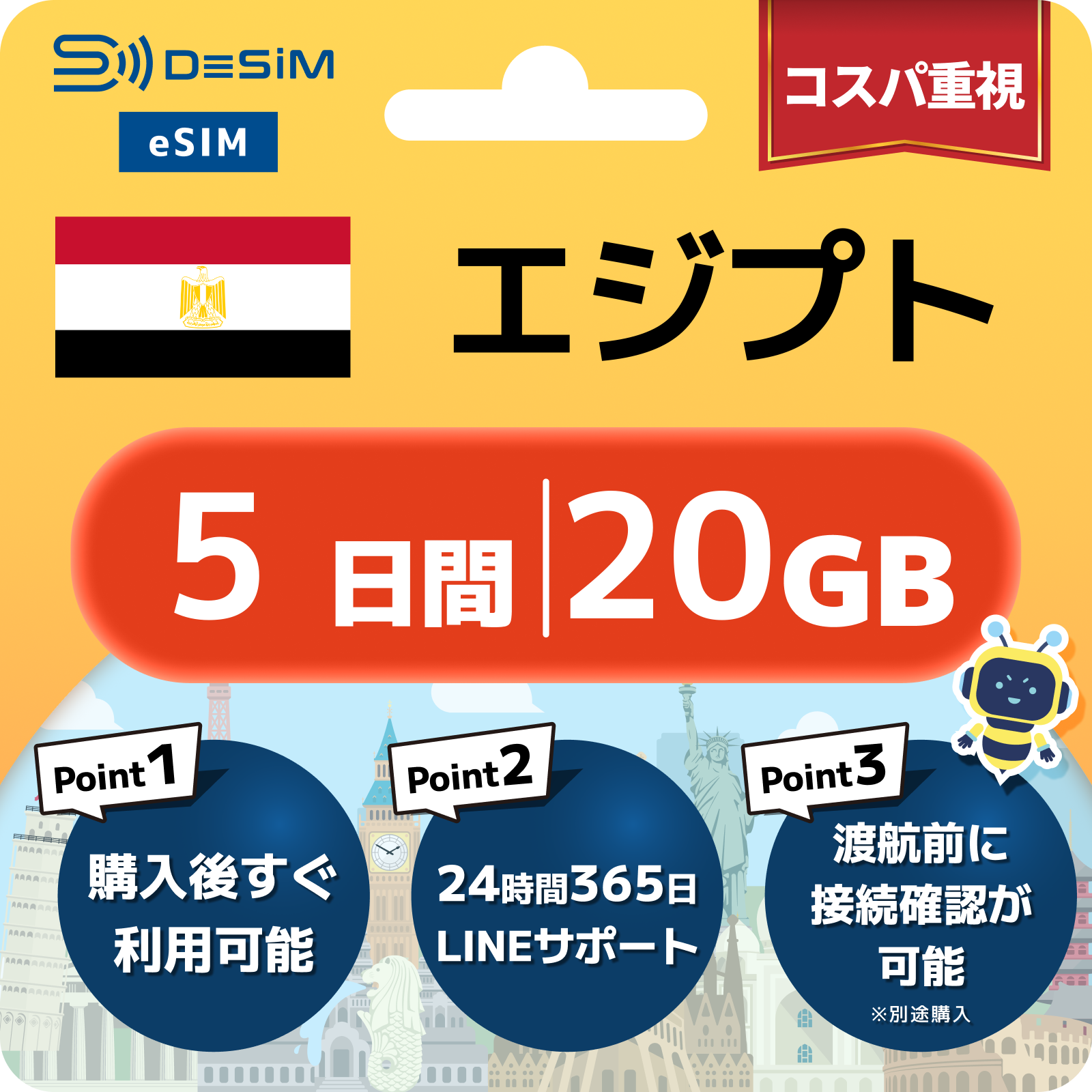 エジプト eSIM 1~30日間