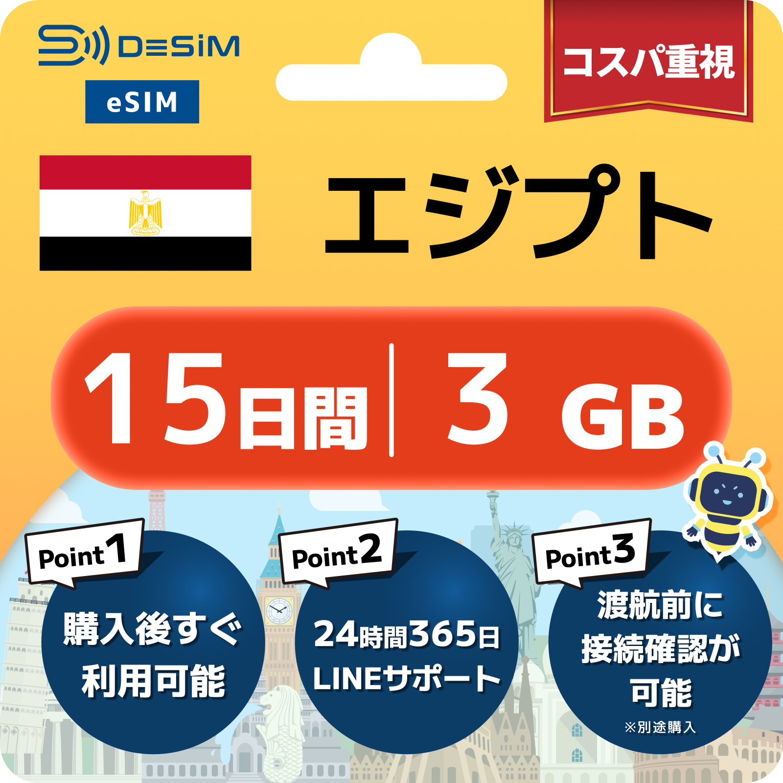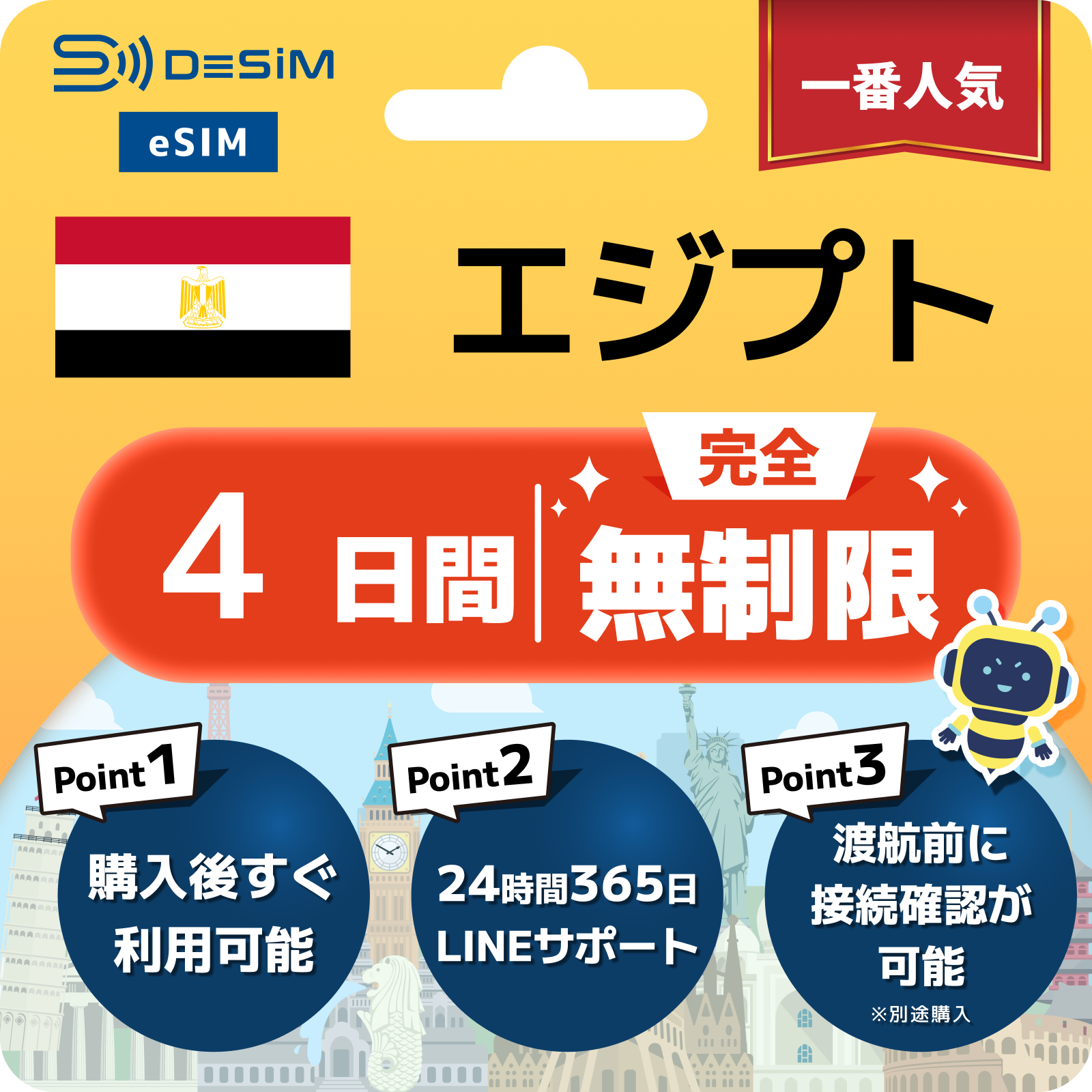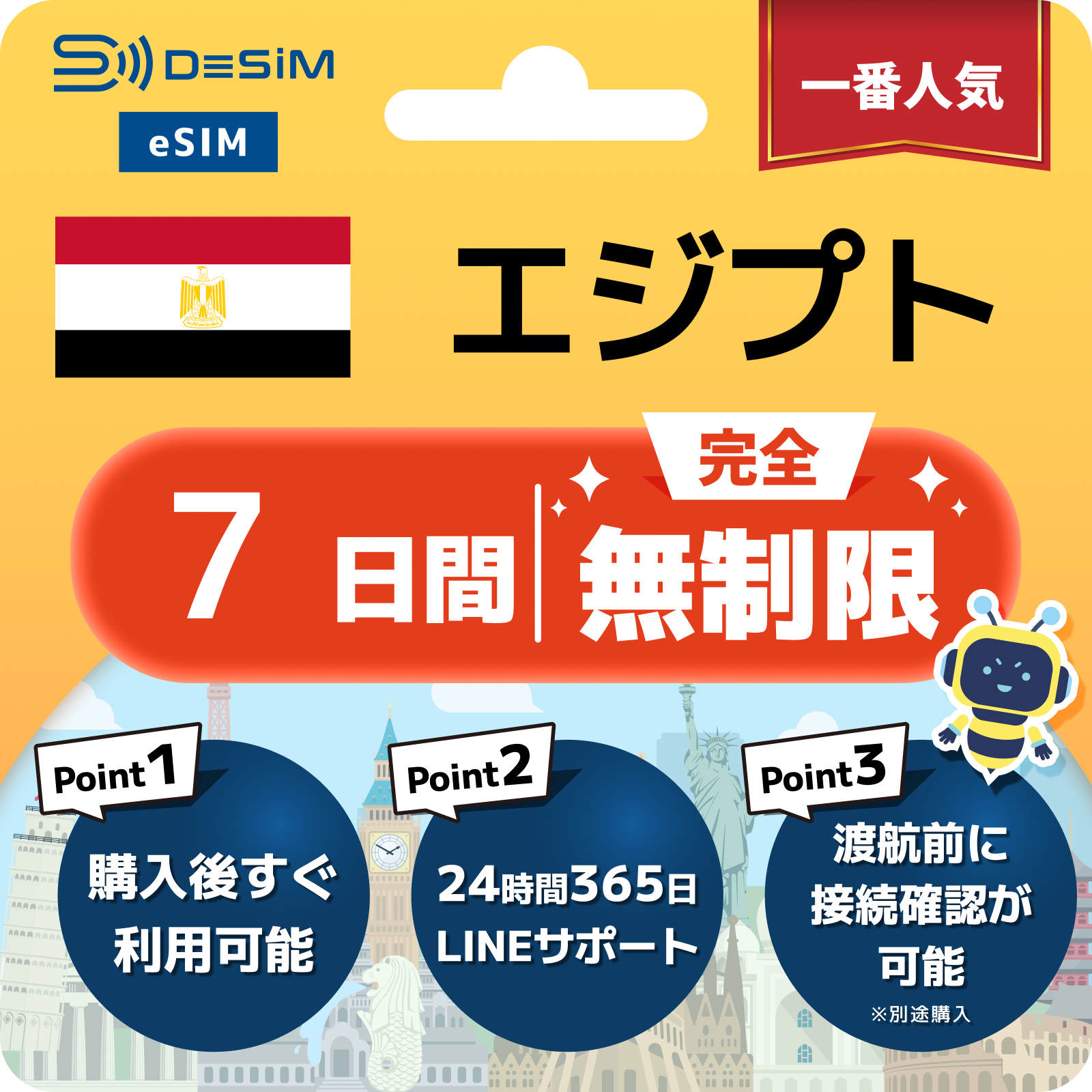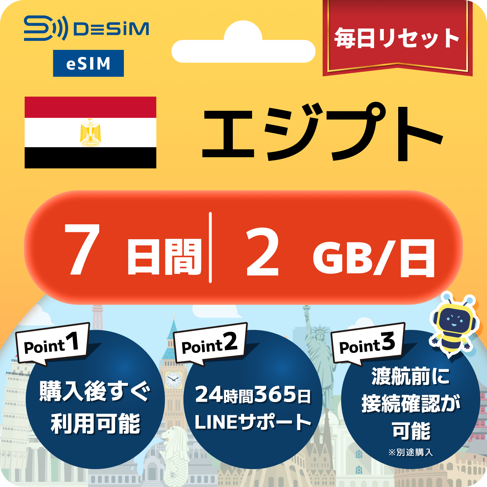 エジプト eSIM 1~30日間