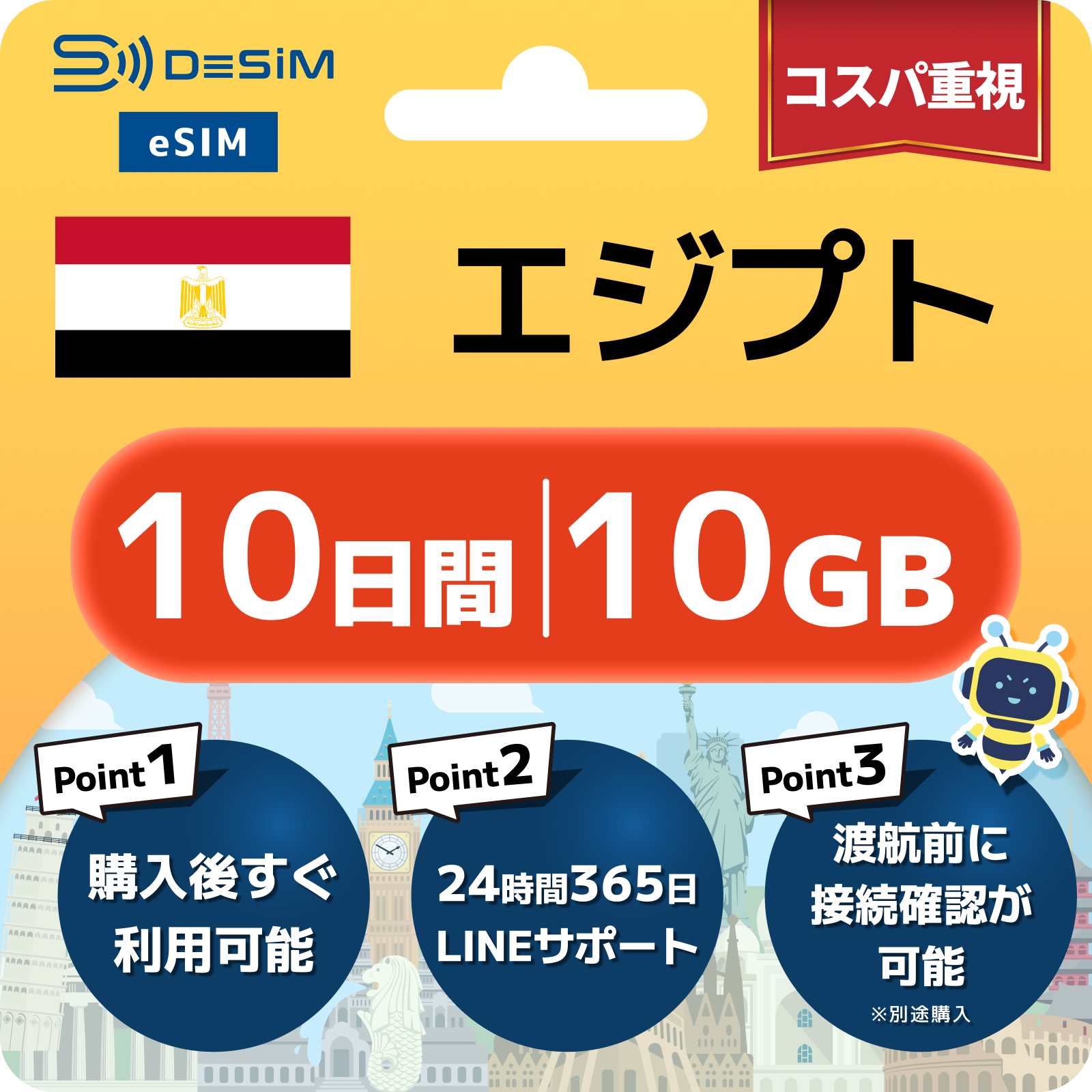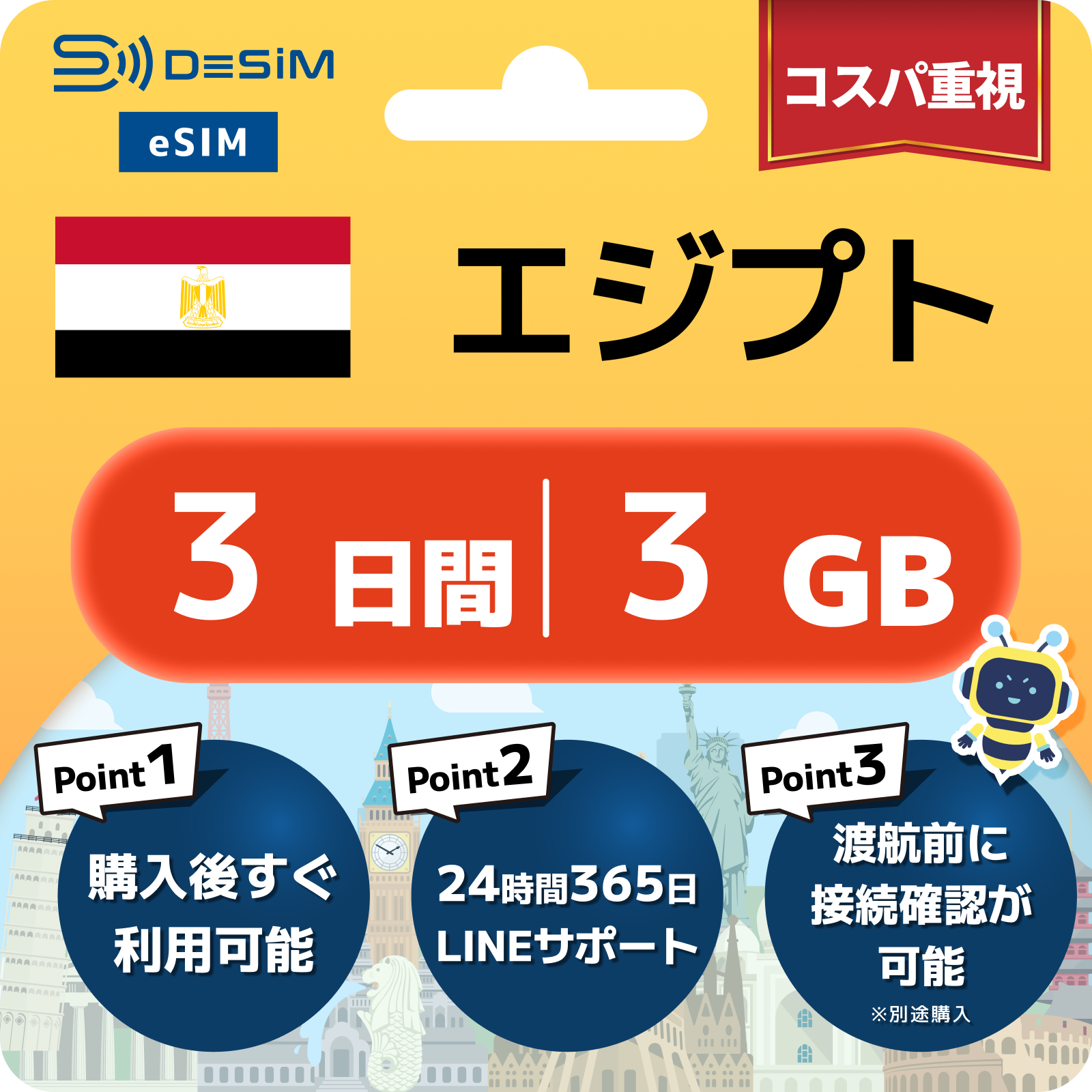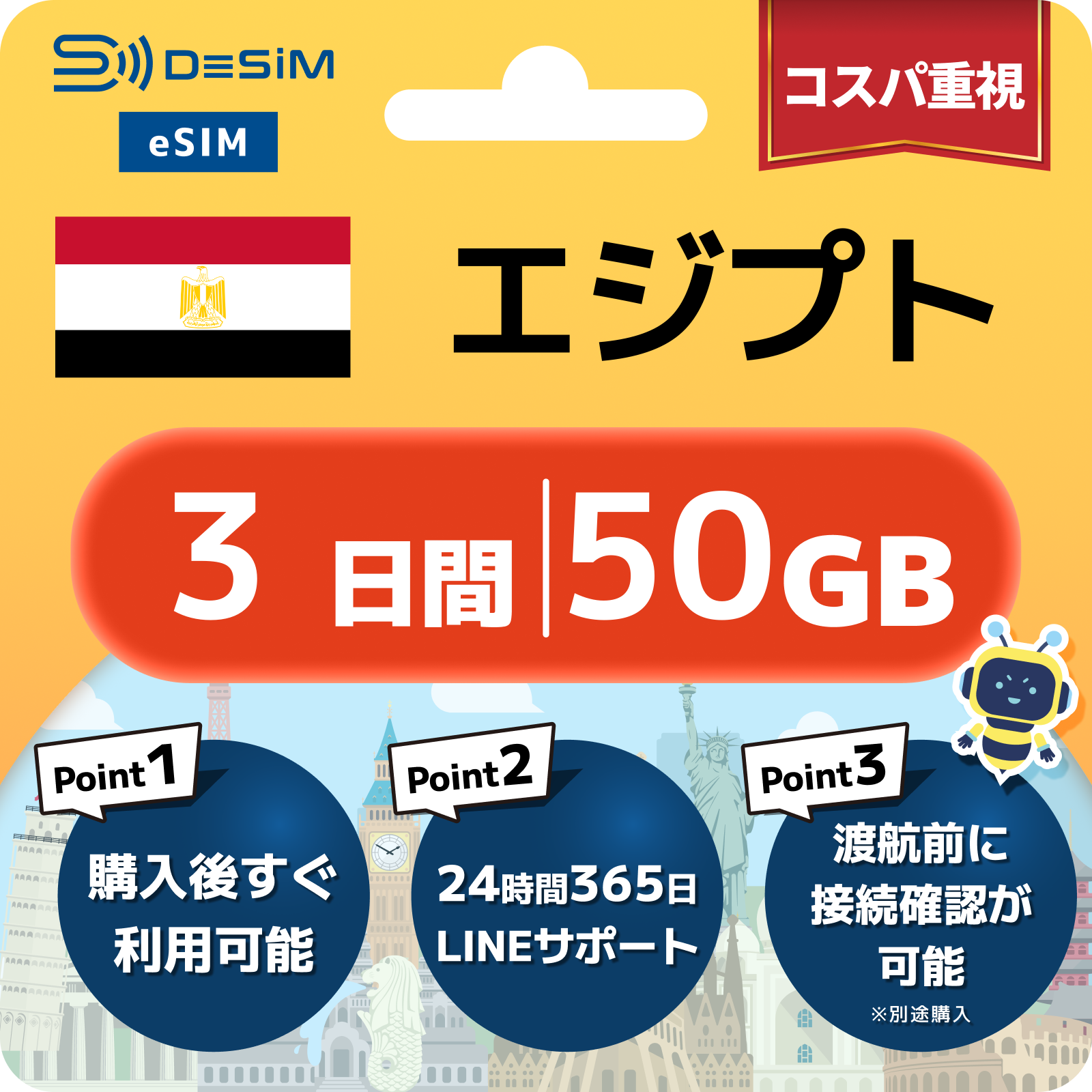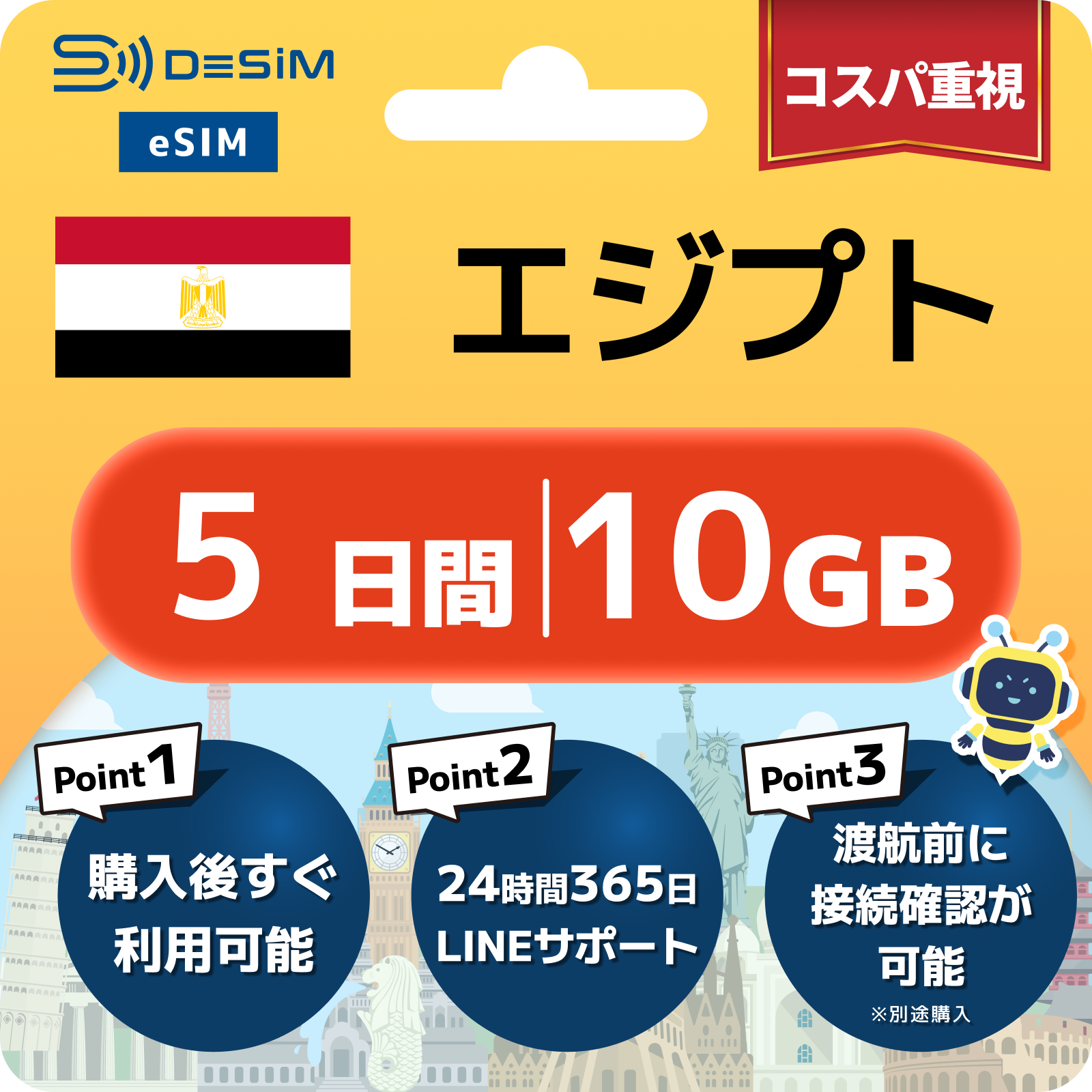 エジプト eSIM 1~30日間
