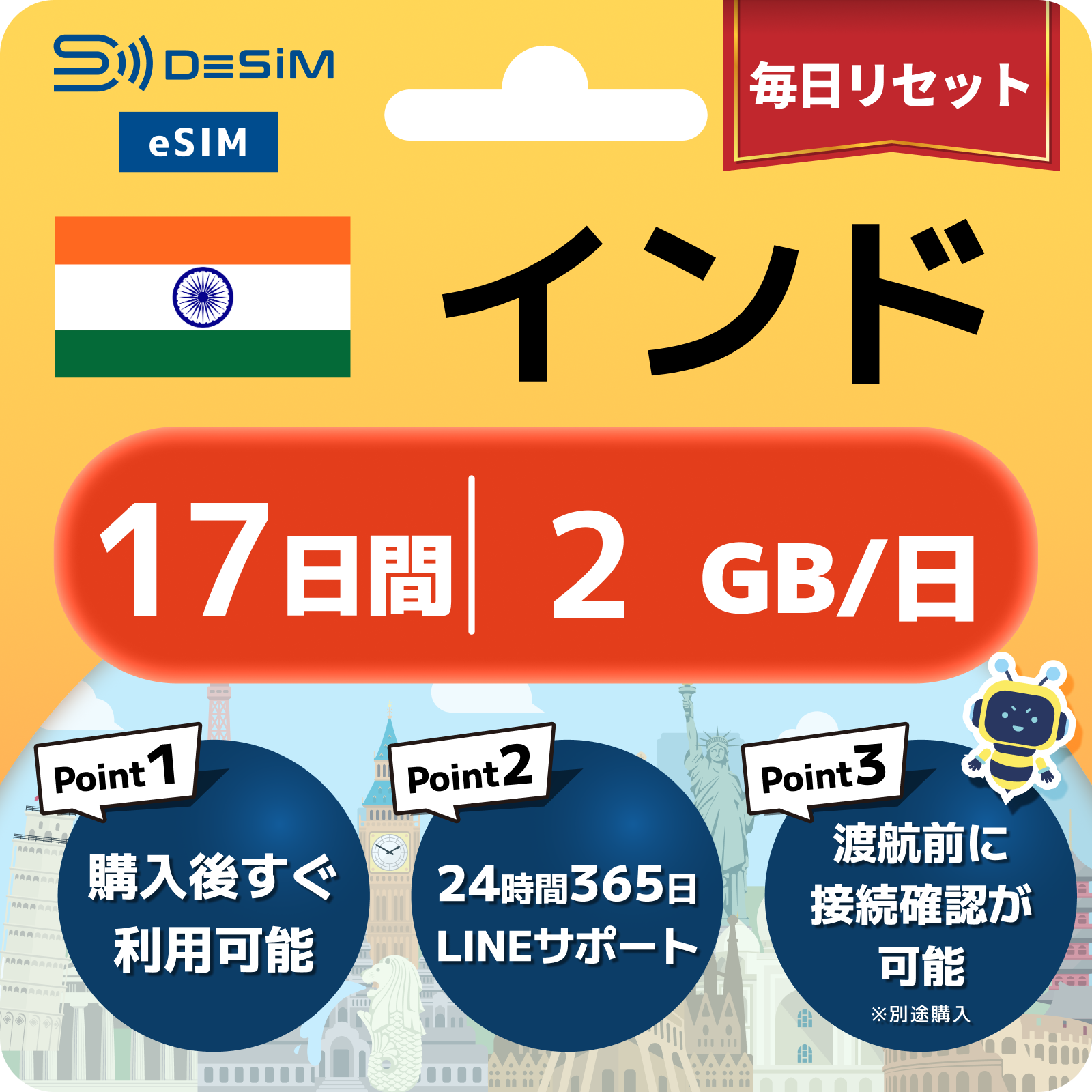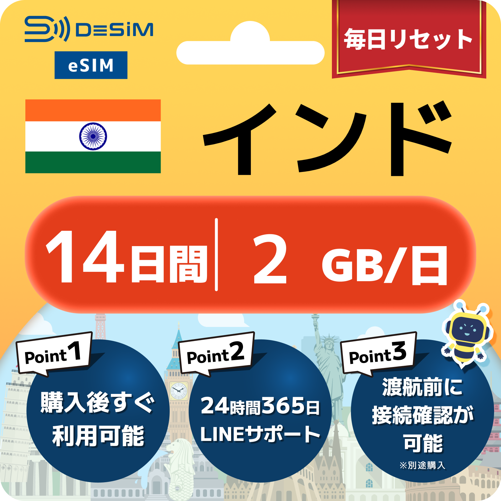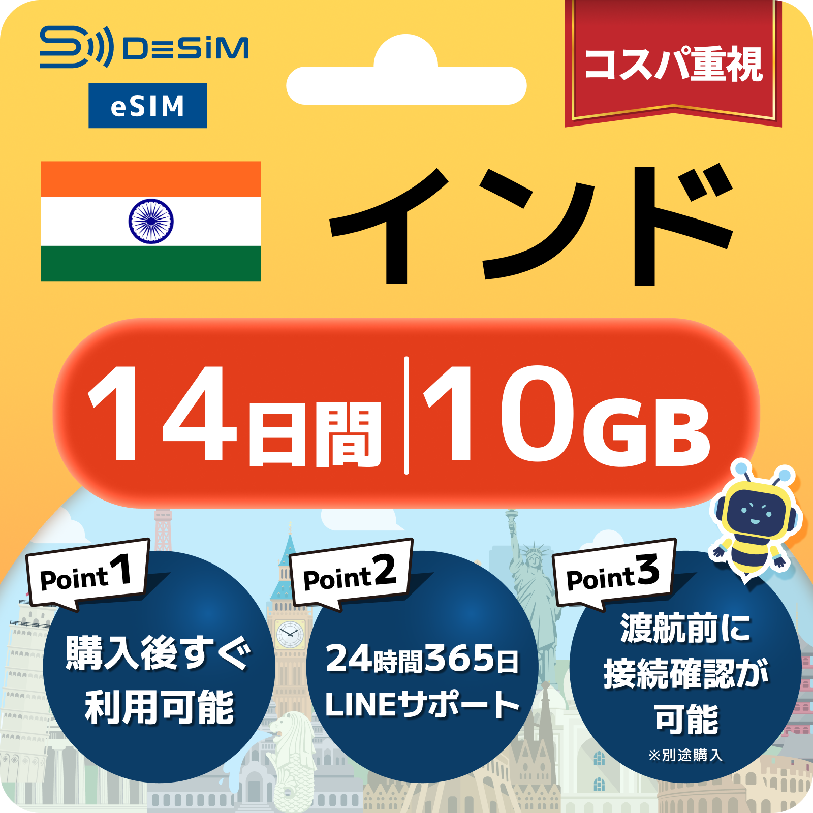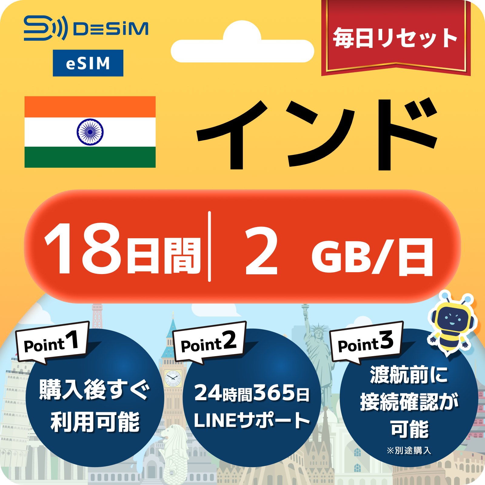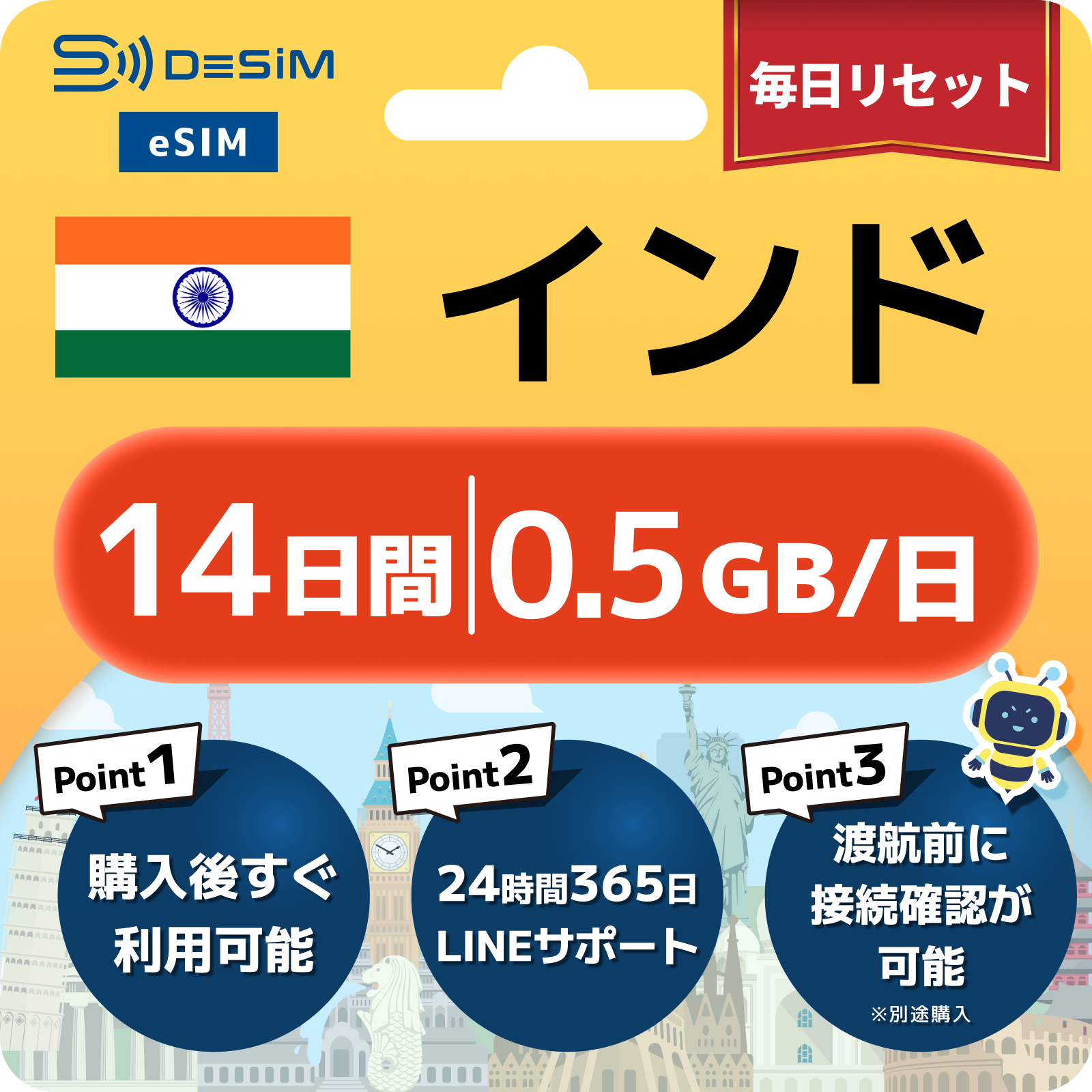 インド eSIM(11~20日間)500MB~50GB選択可能 即日開通 テザリング対応