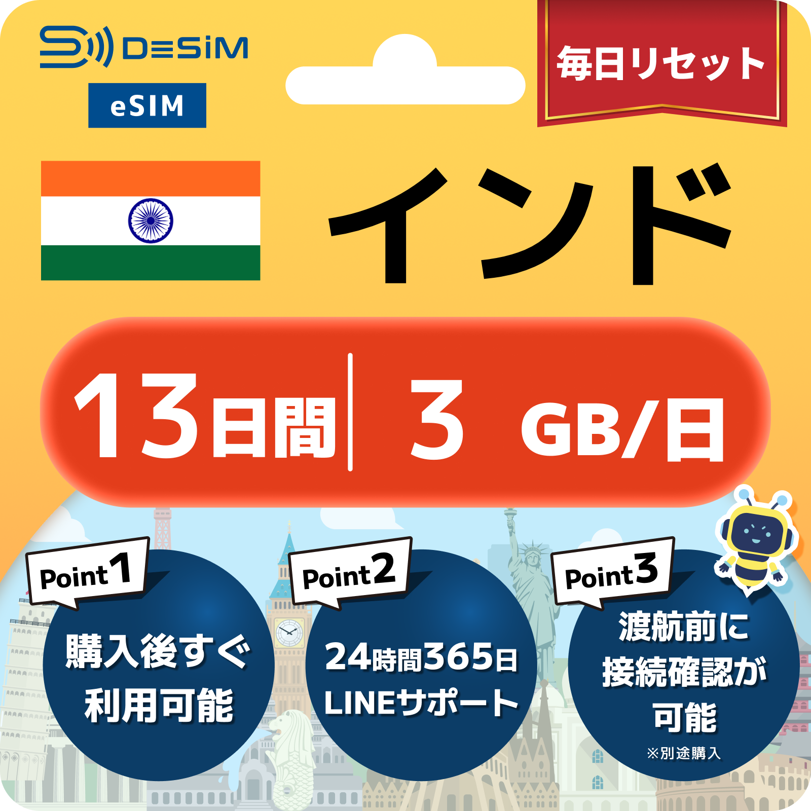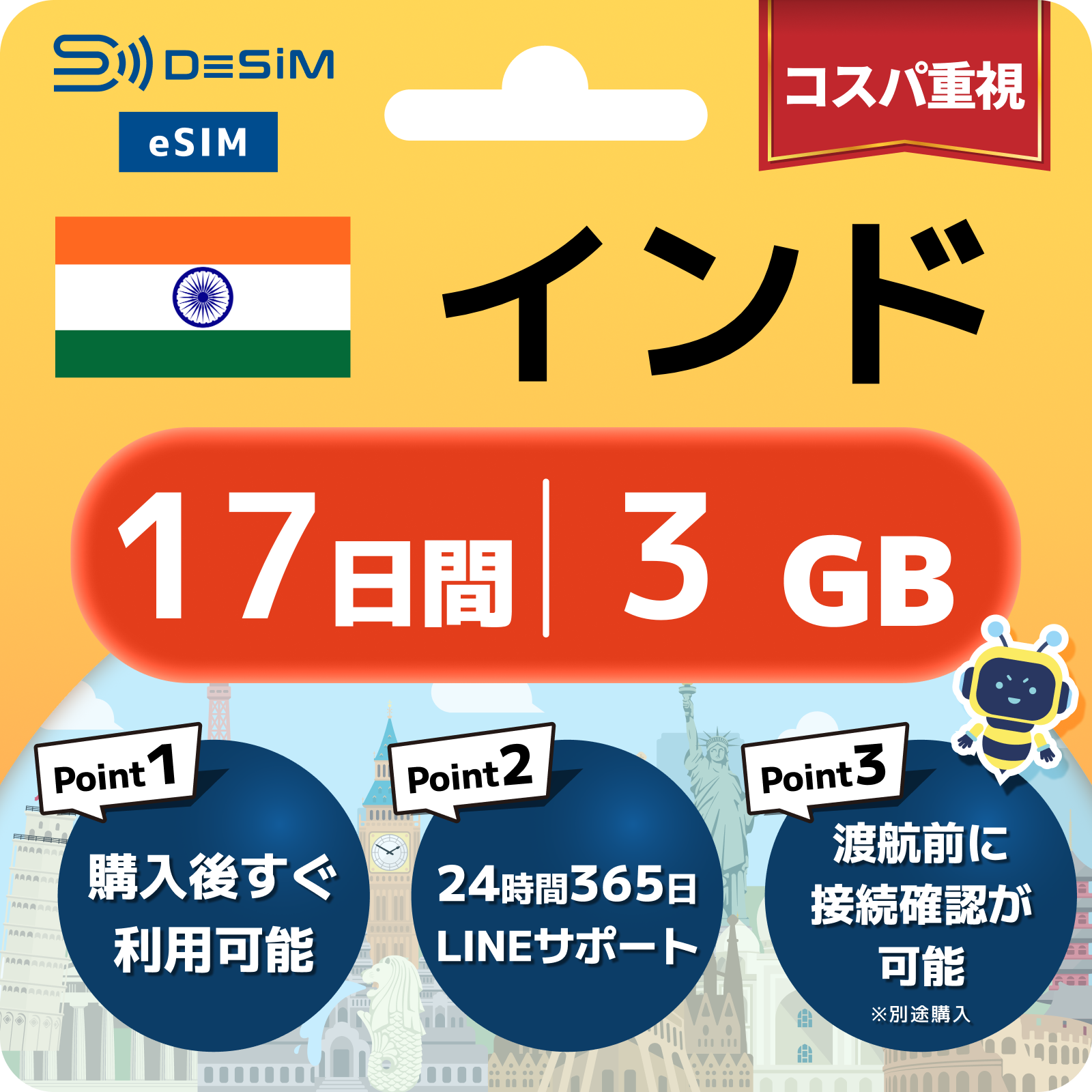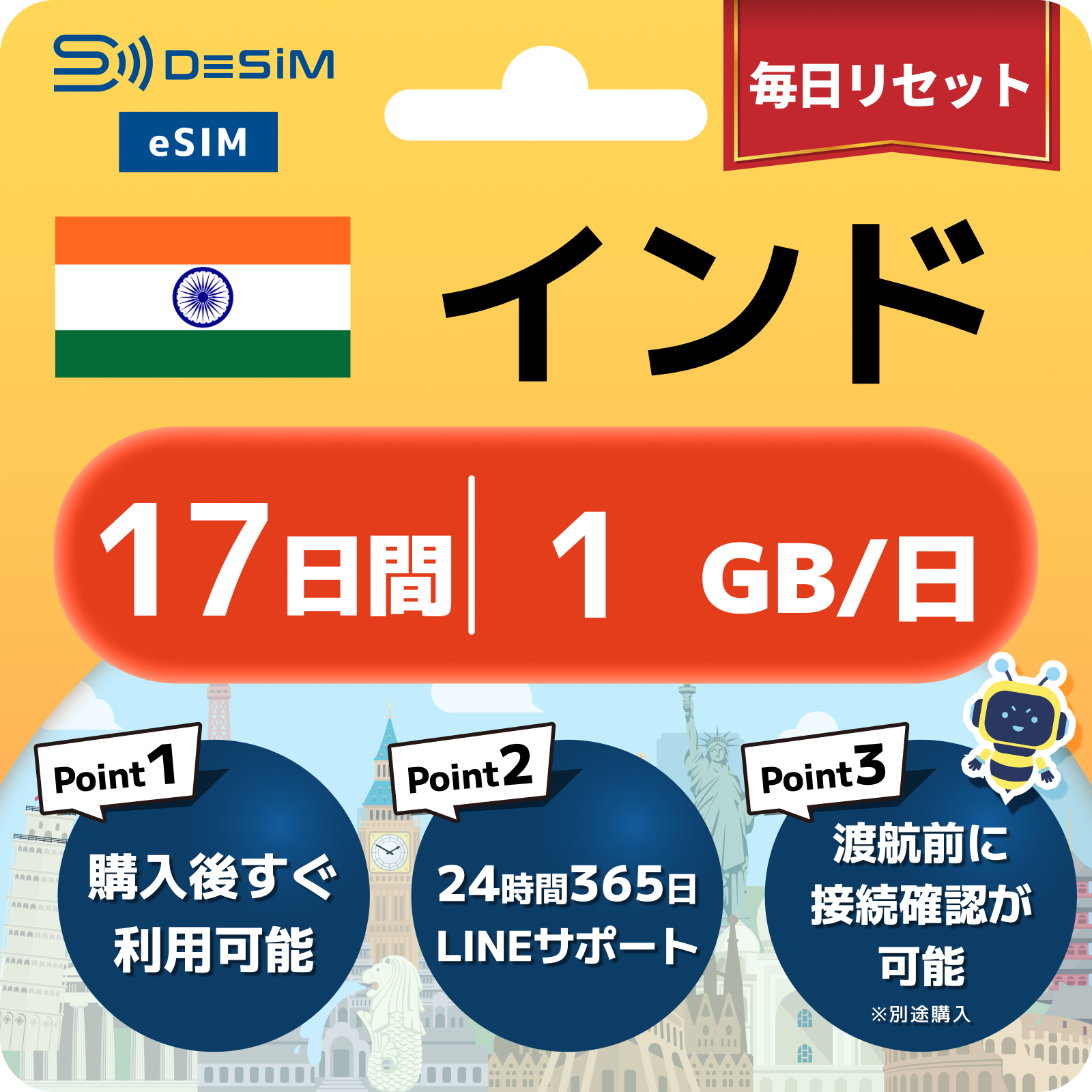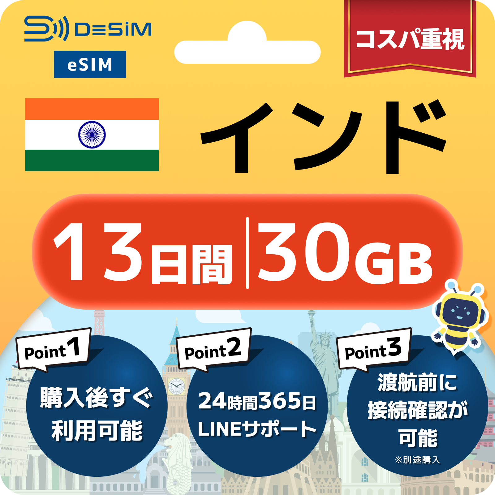 インド eSIM(11~20日間)500MB~50GB選択可能 即日開通 テザリング対応