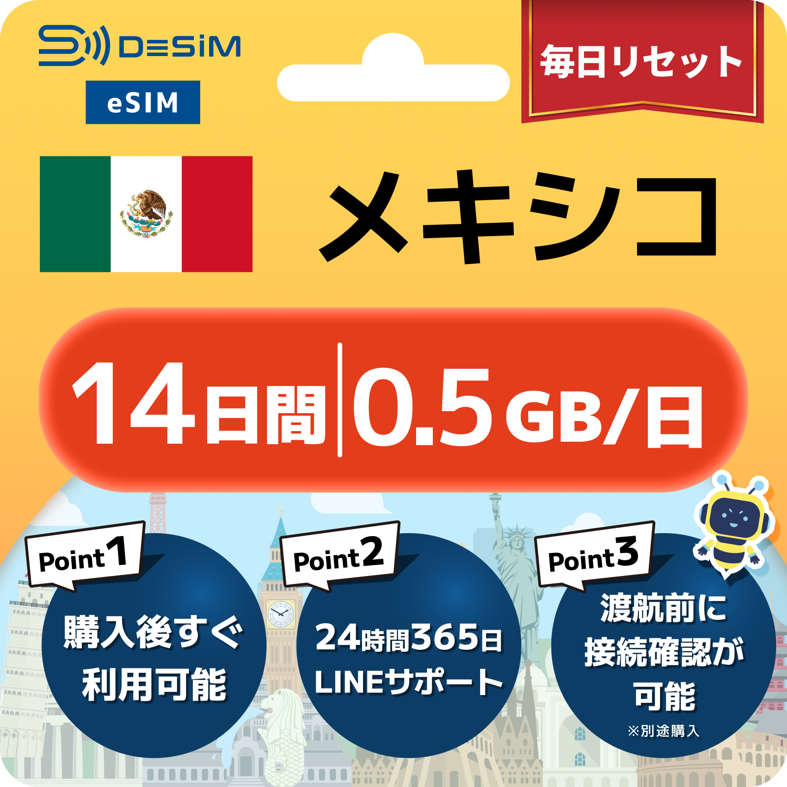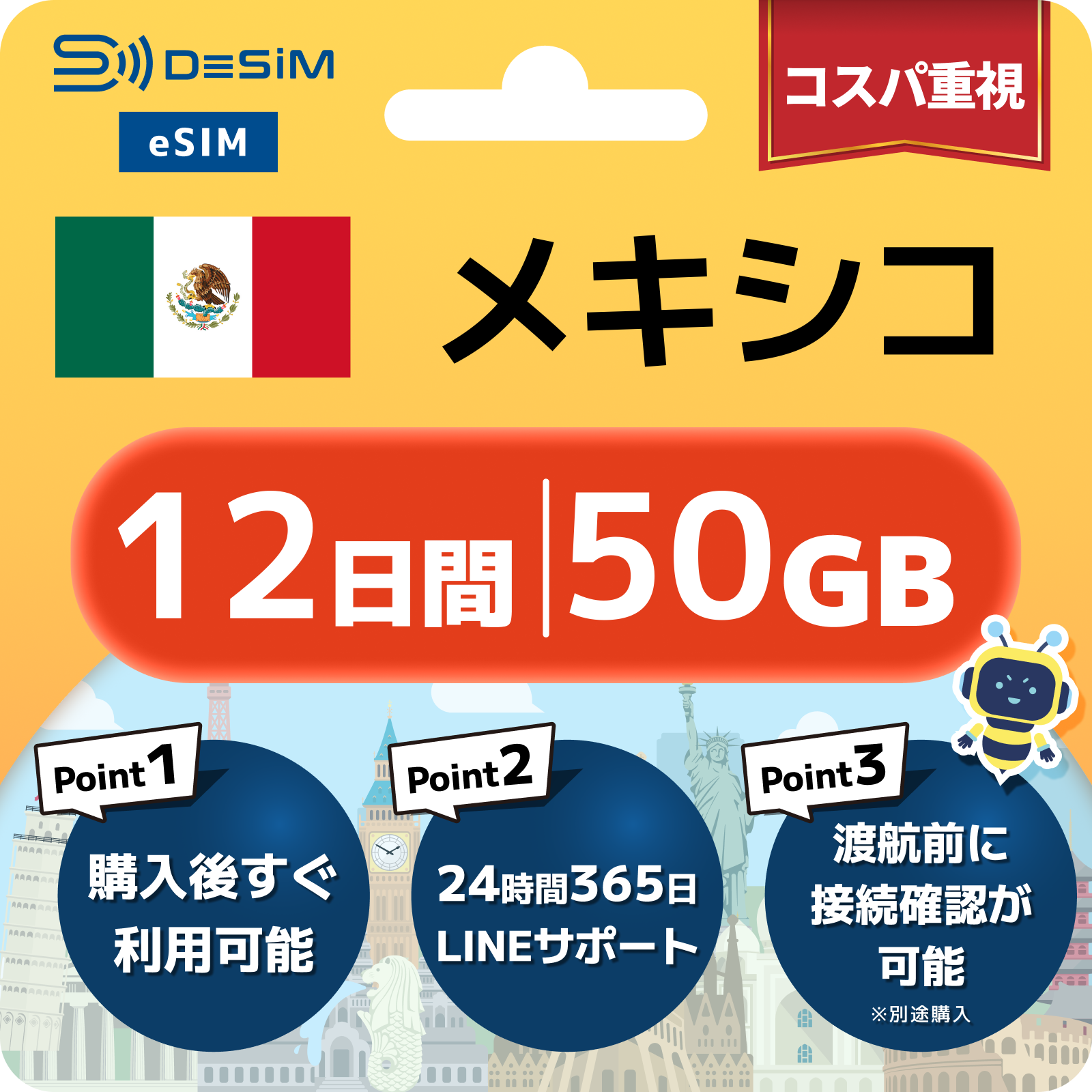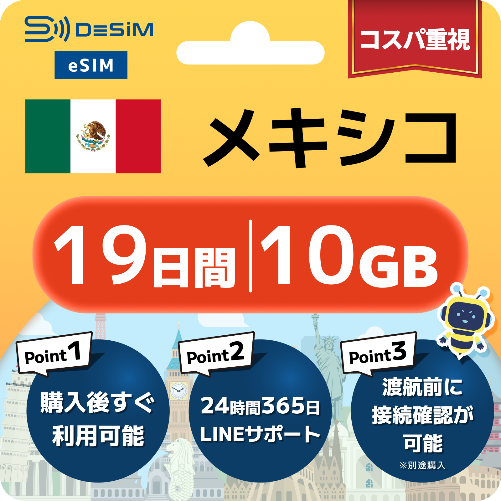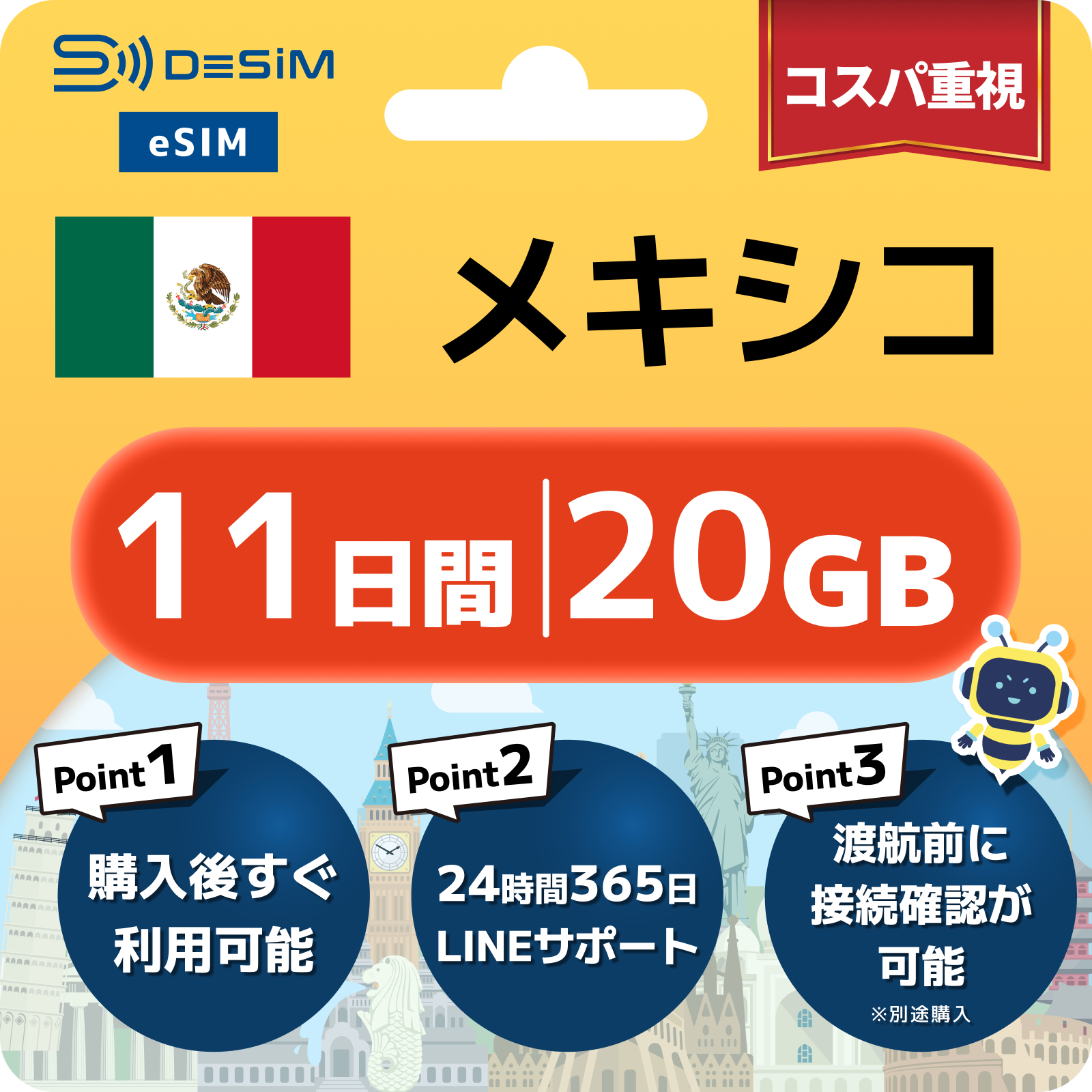 メキシコ eSIM(11~20日間)500MB~50GB選択可能 即日開通 テザリング対応