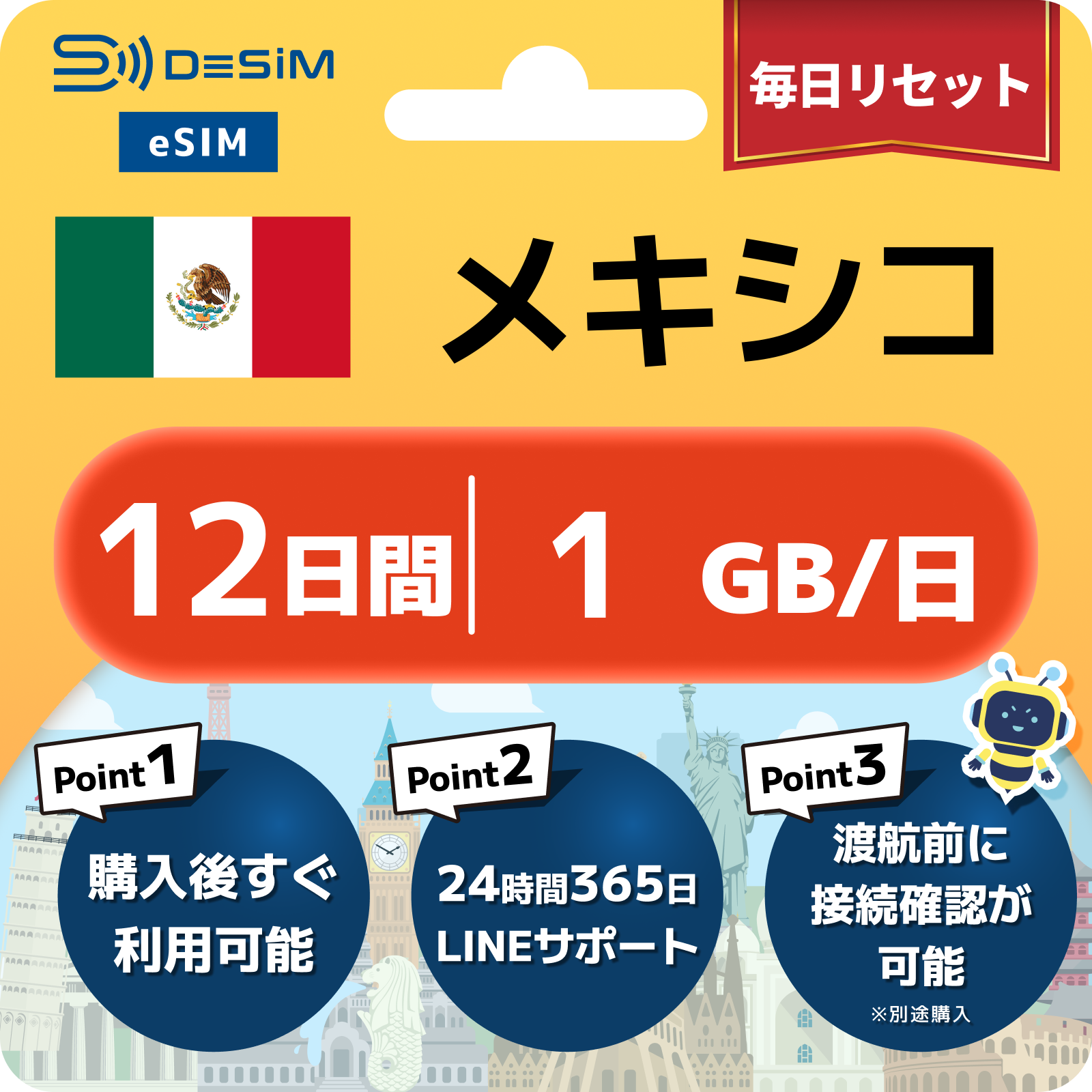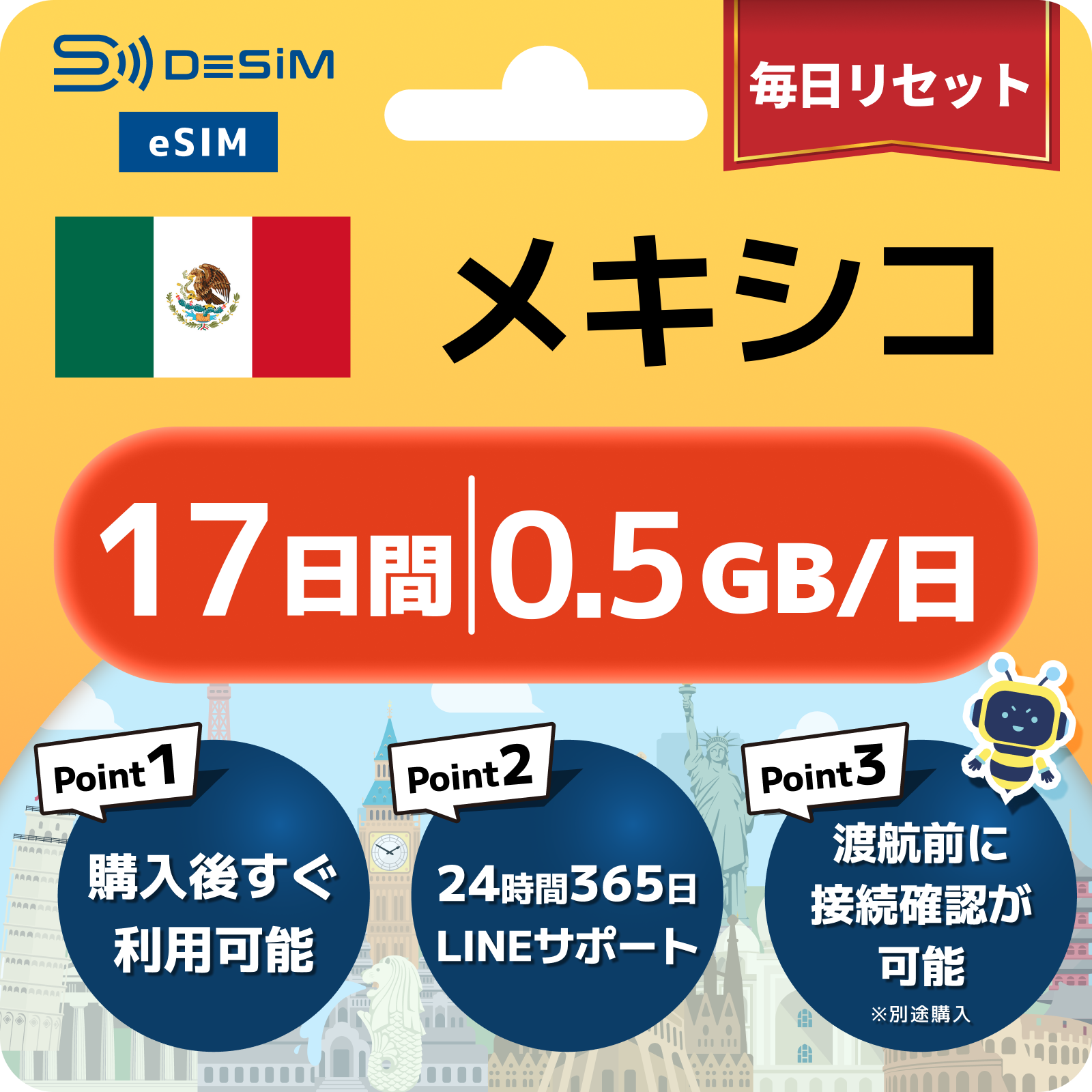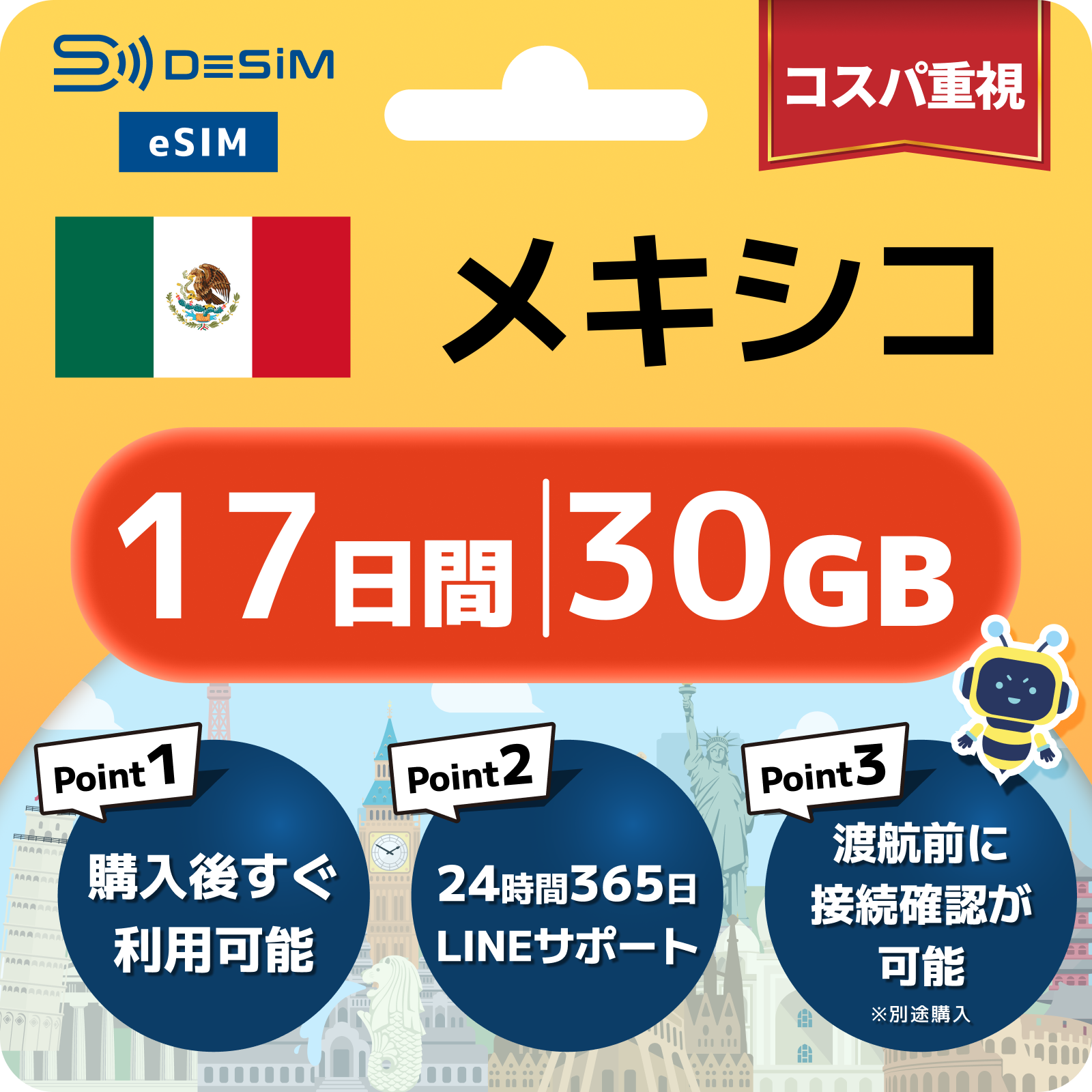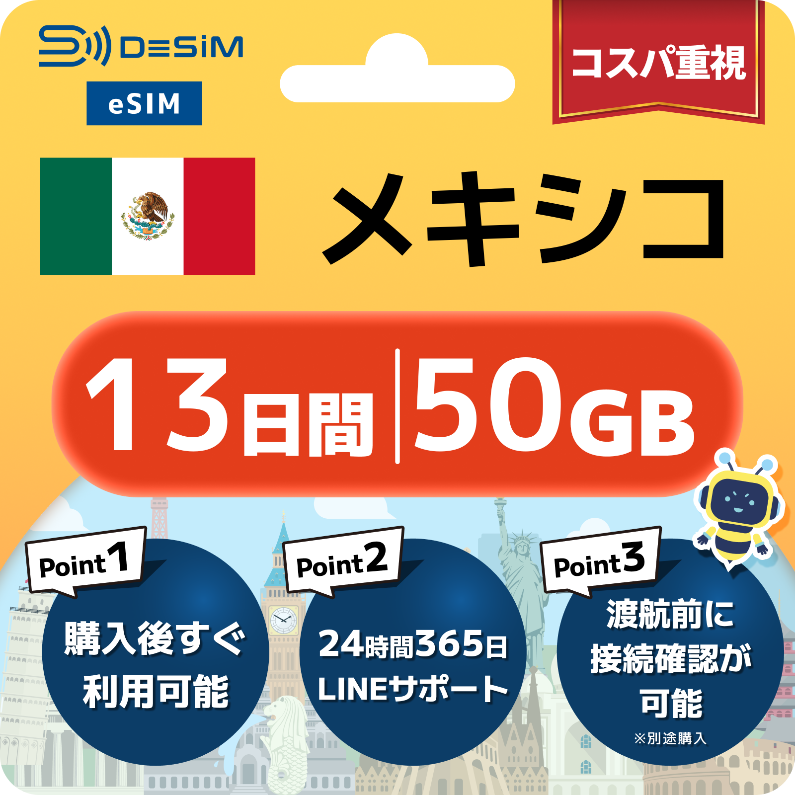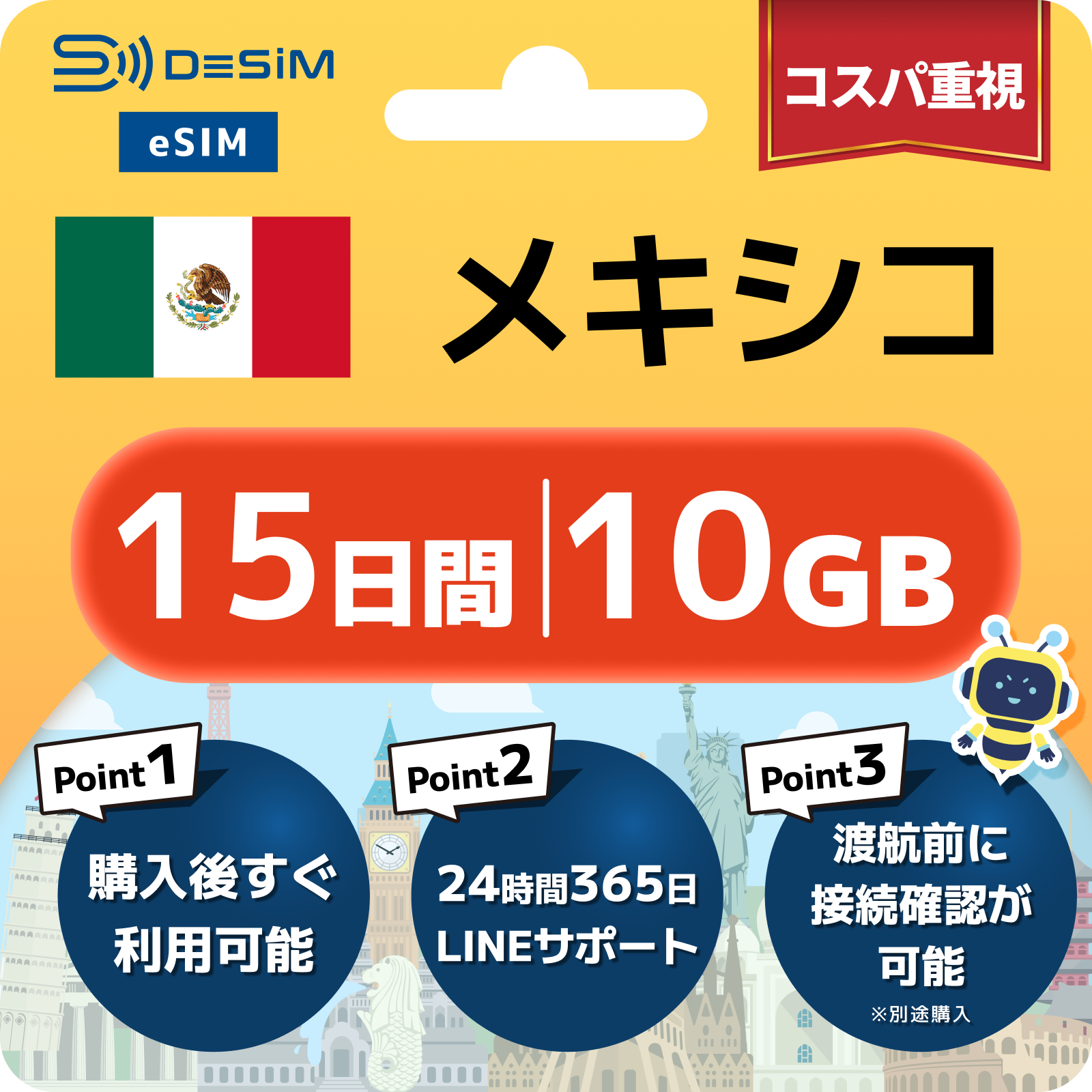 メキシコ eSIM(11~20日間)500MB~50GB選択可能 即日開通 テザリング対応