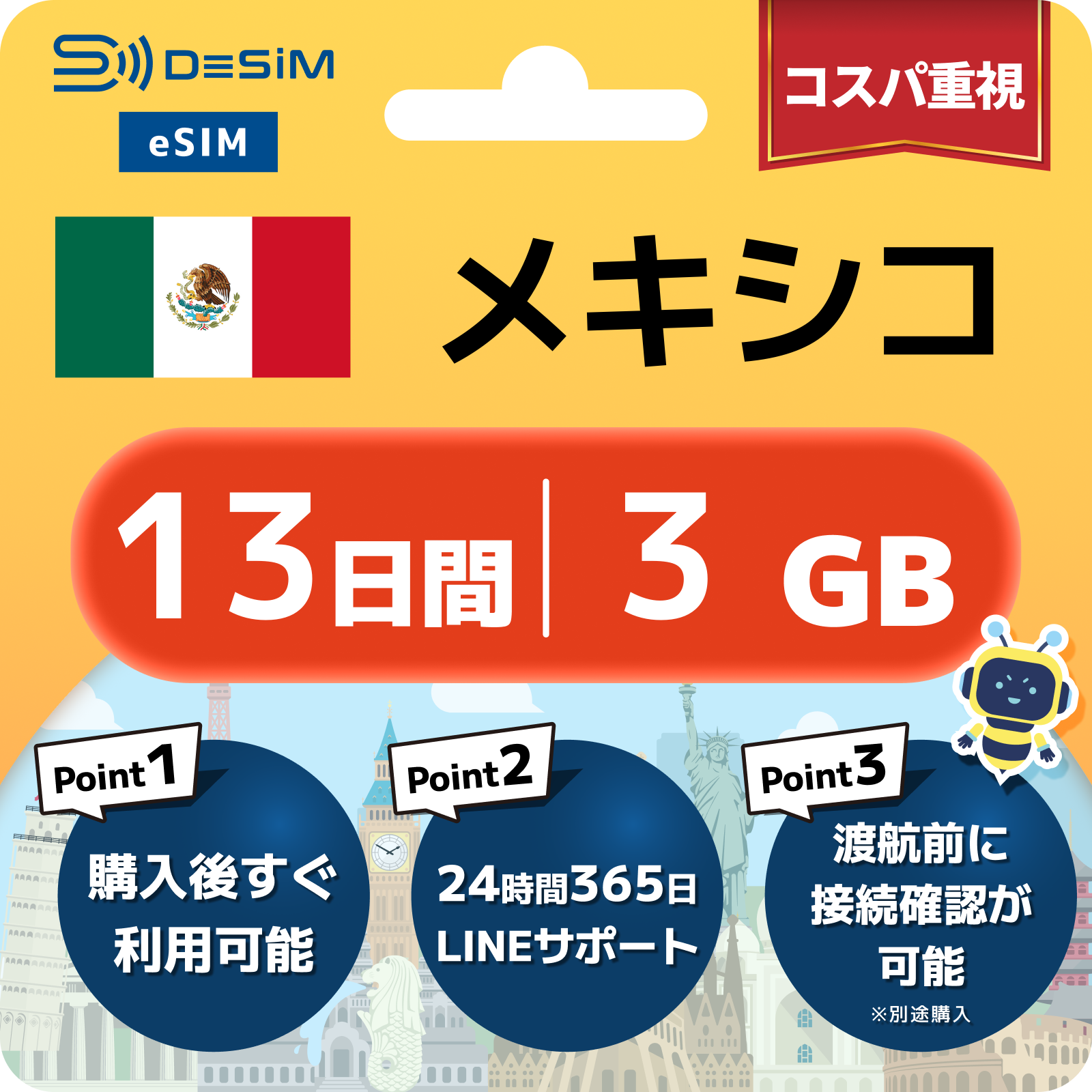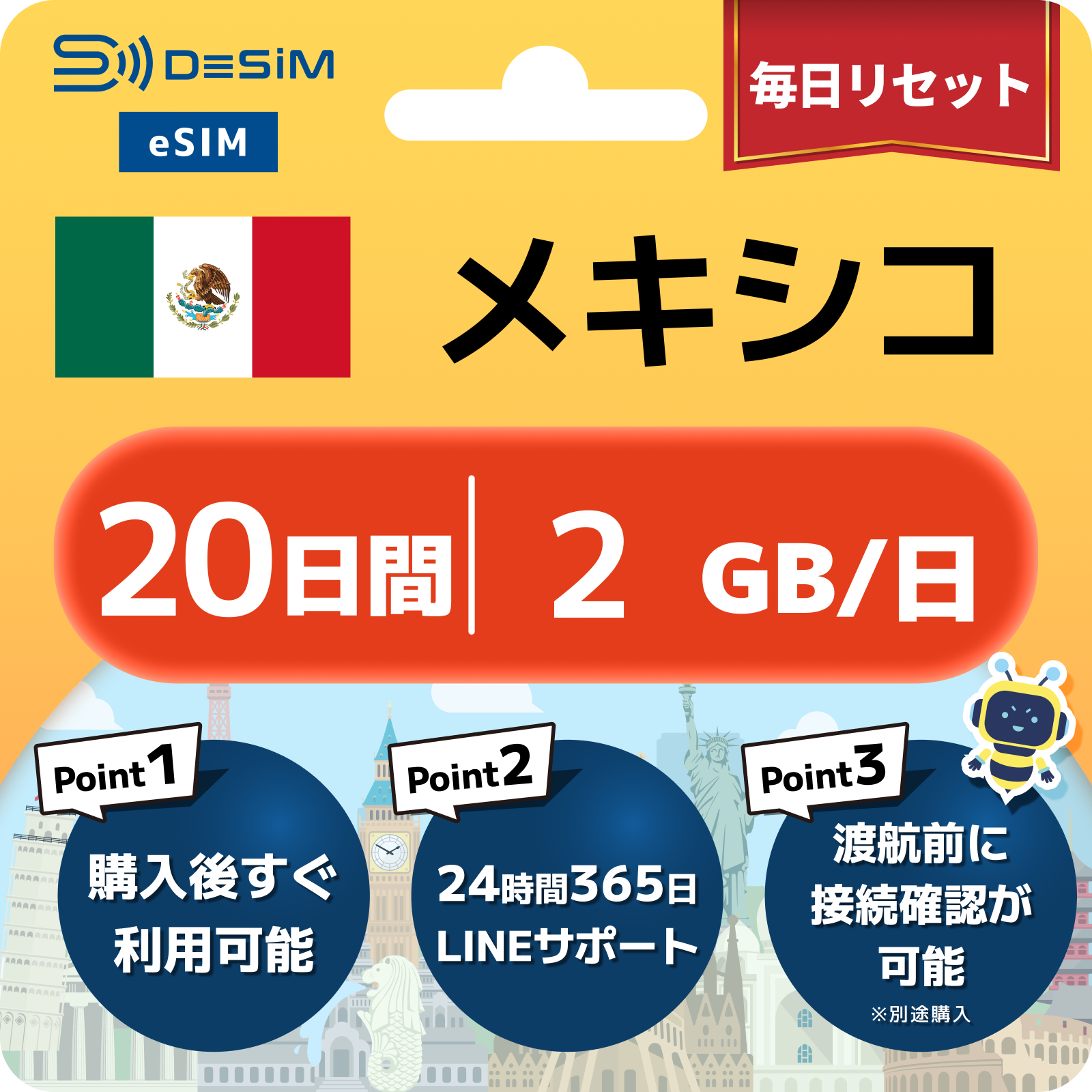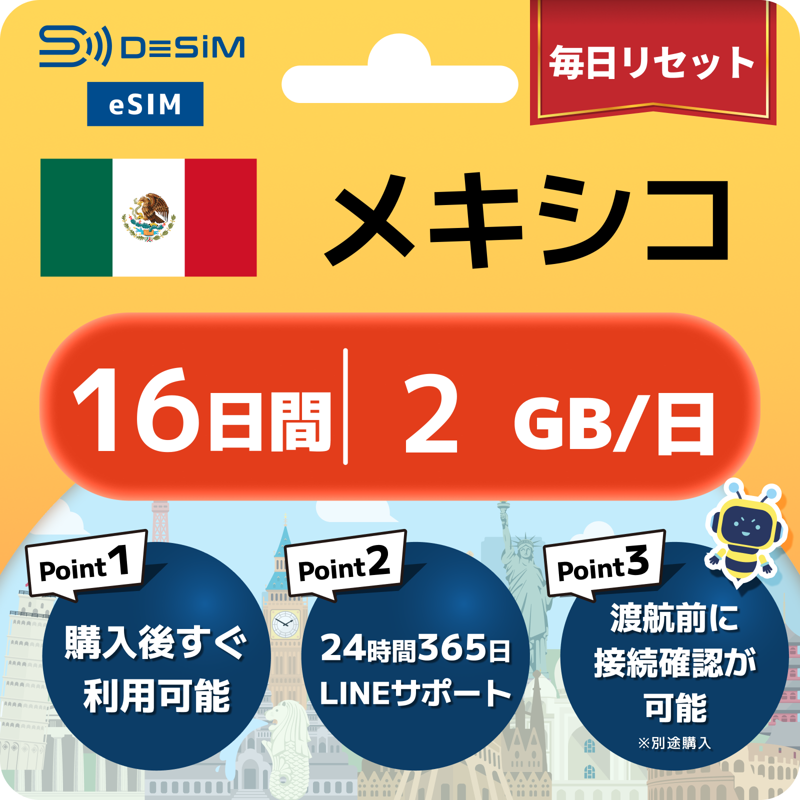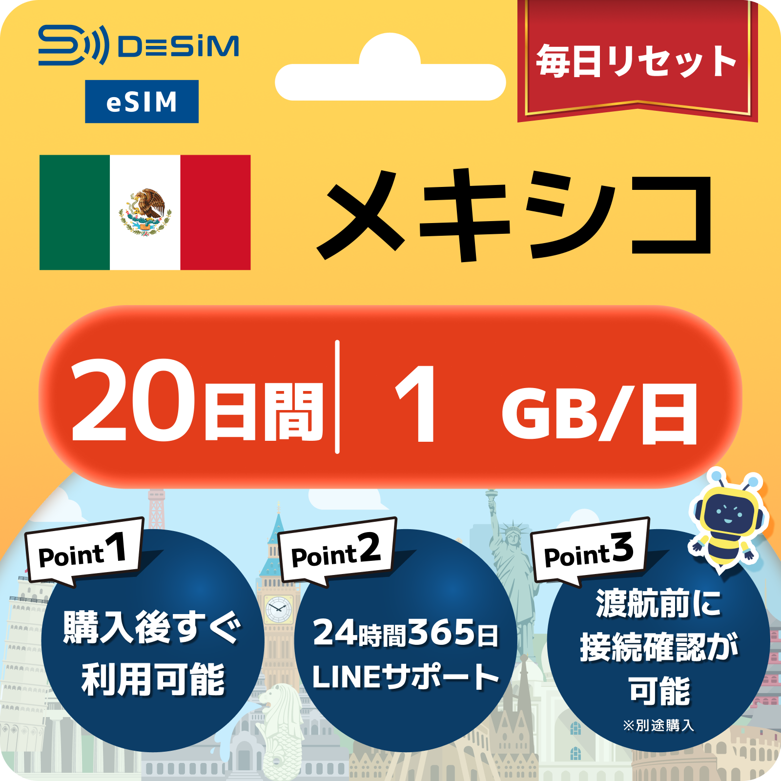 メキシコ eSIM(11~20日間)500MB~50GB選択可能 即日開通 テザリング対応
