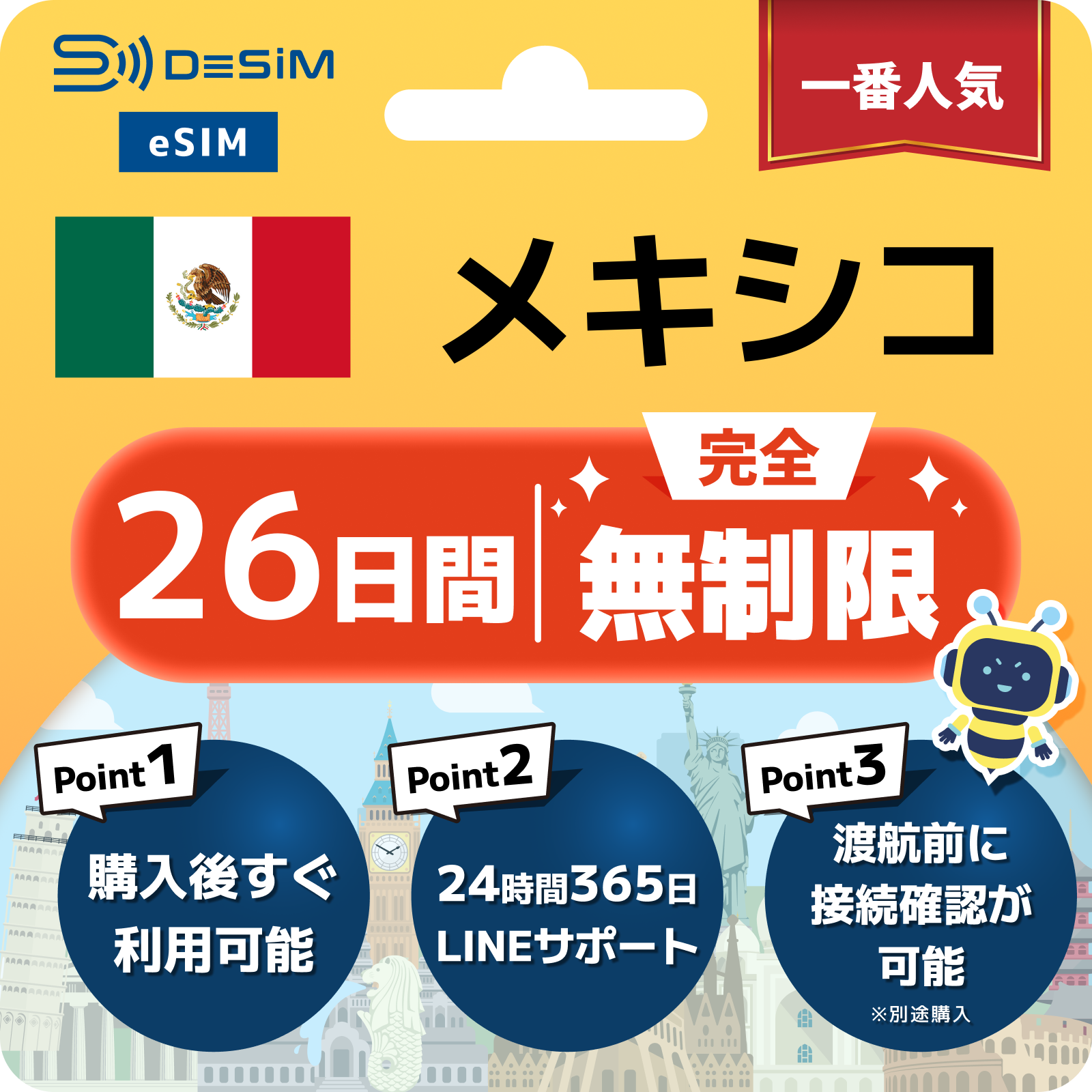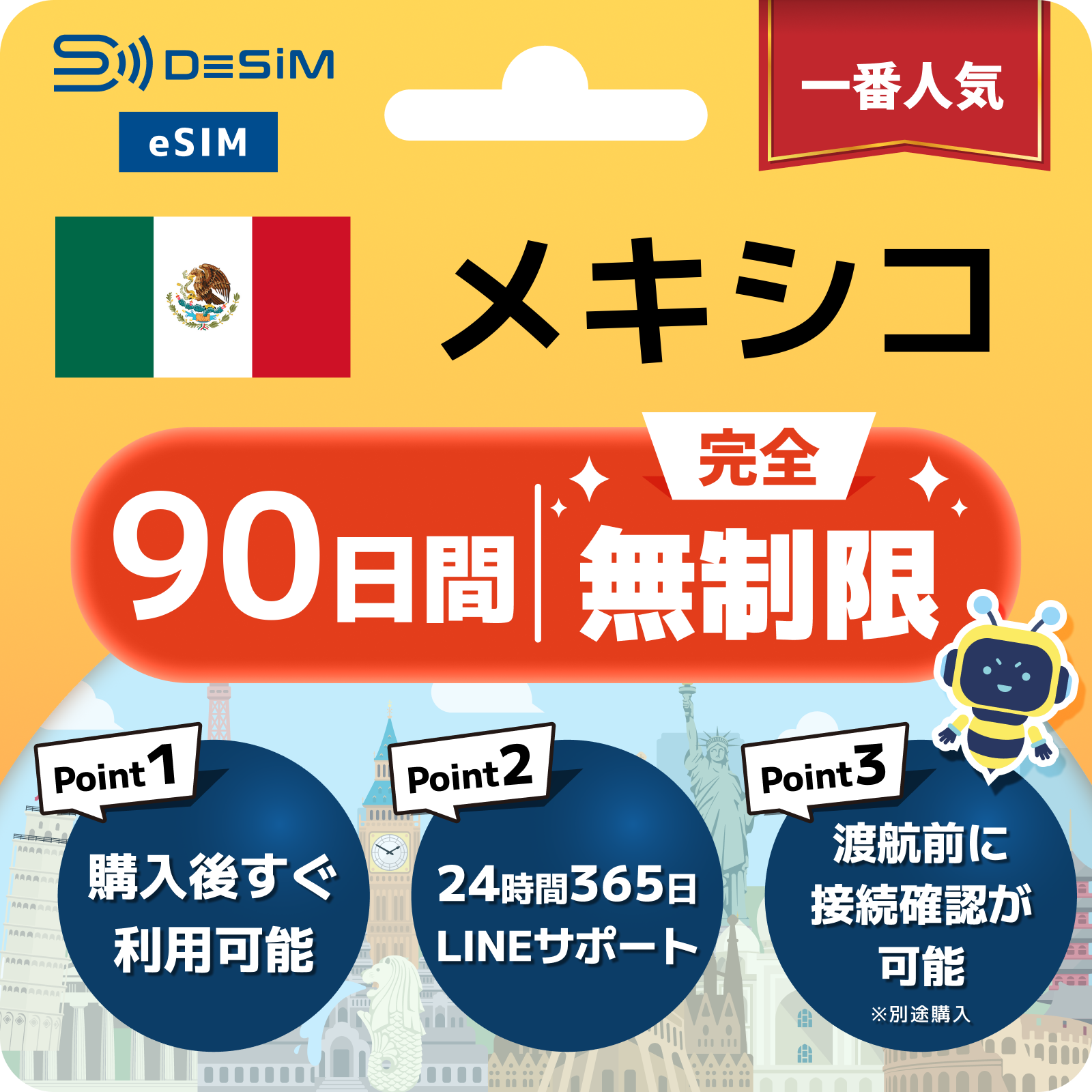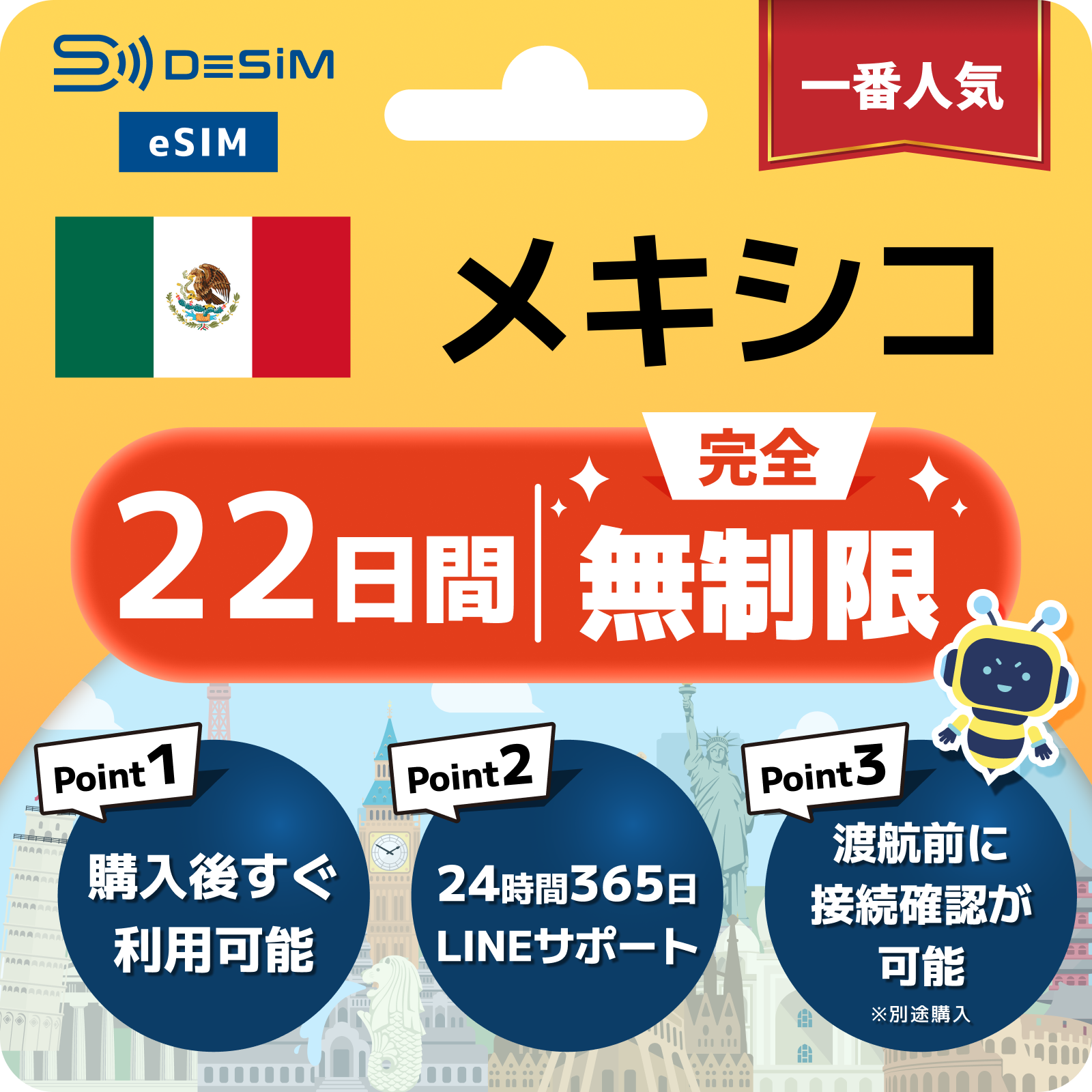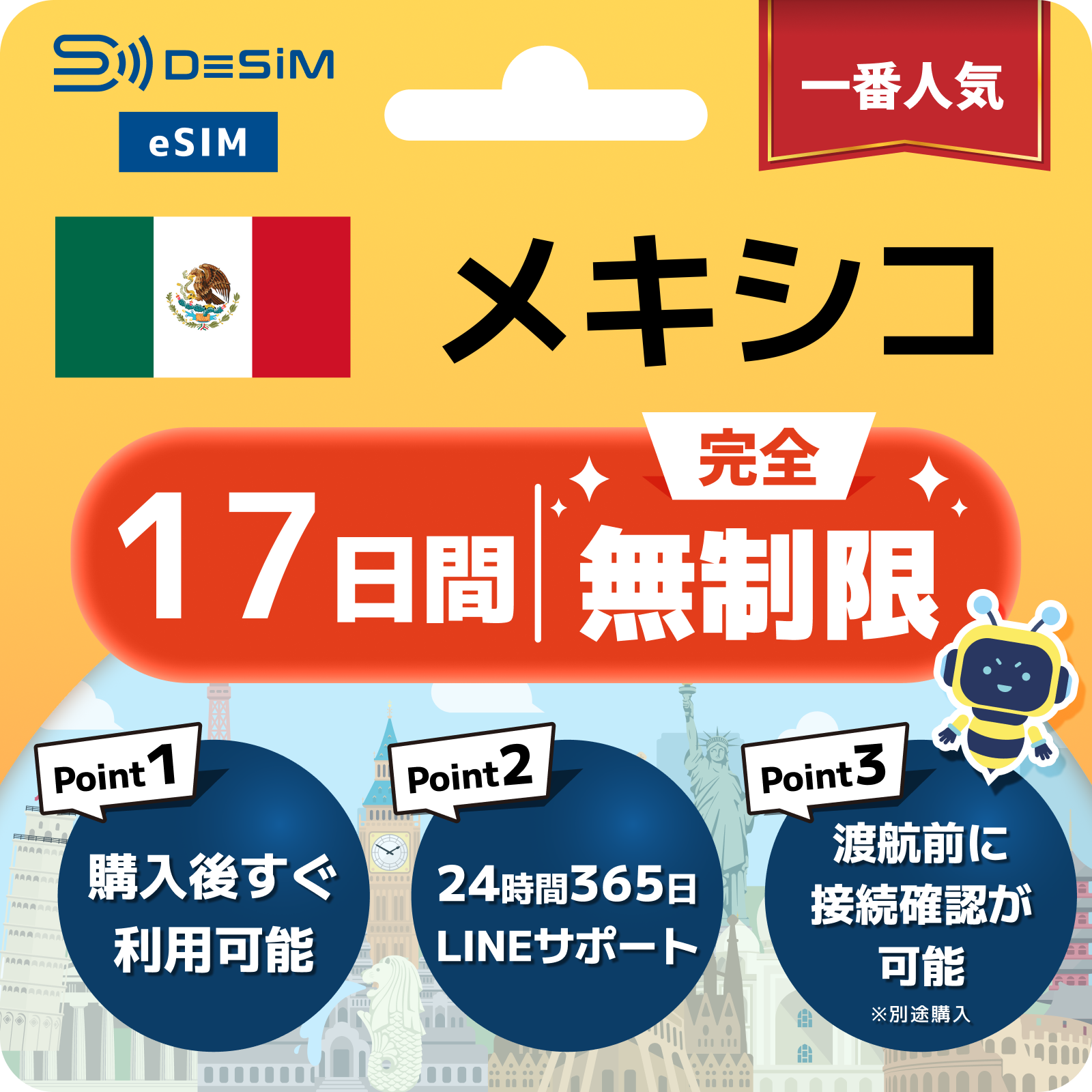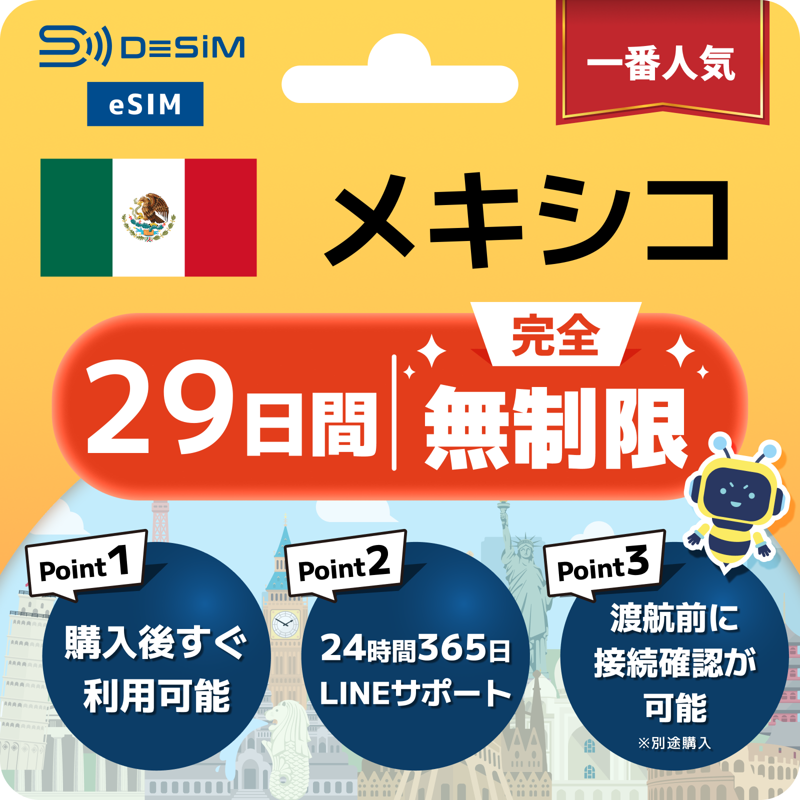 メキシコ eSIM(1~30日間) 完全無制限eSIM 即日開通 テザリング対応