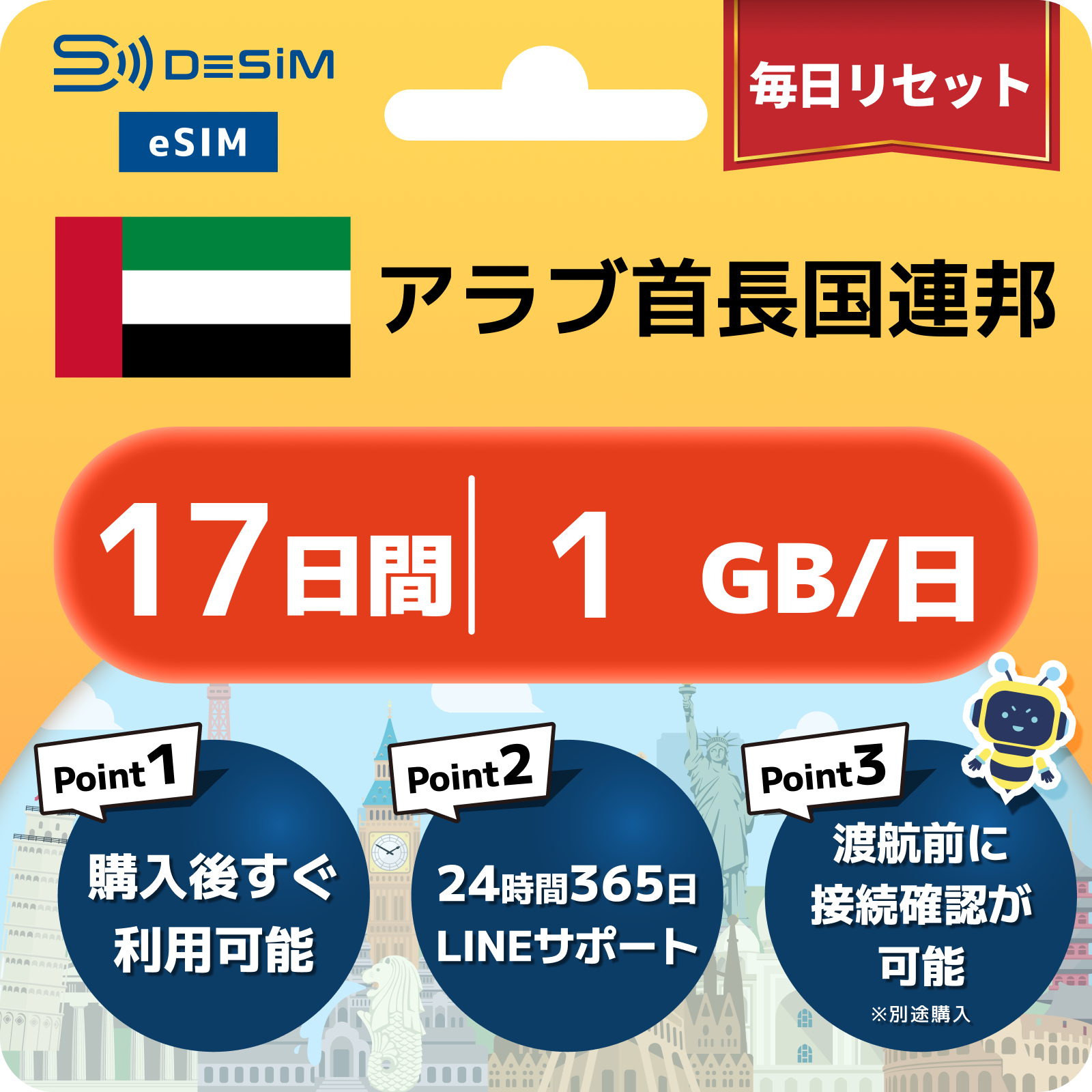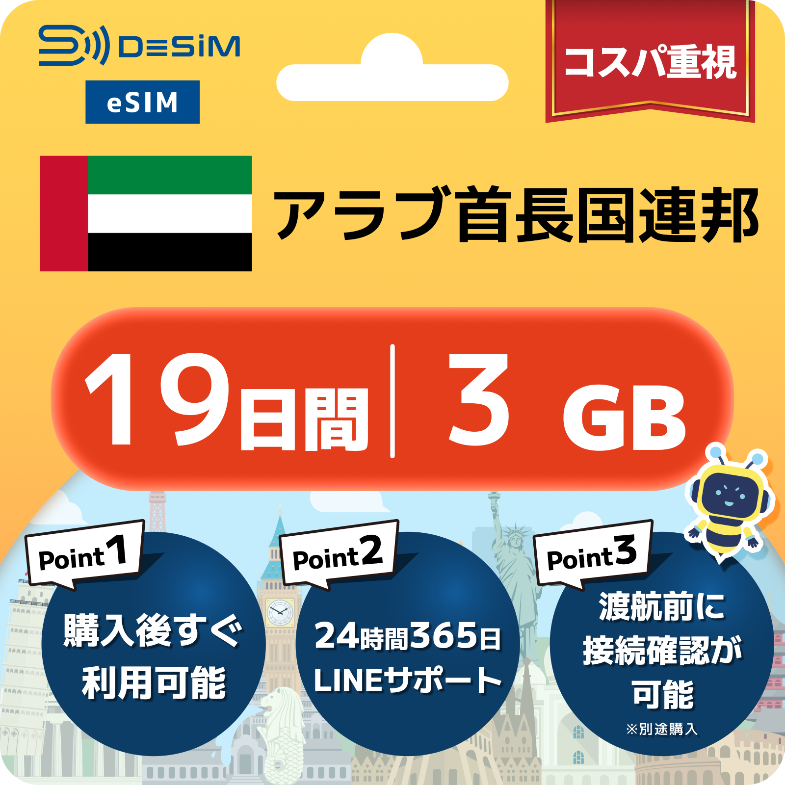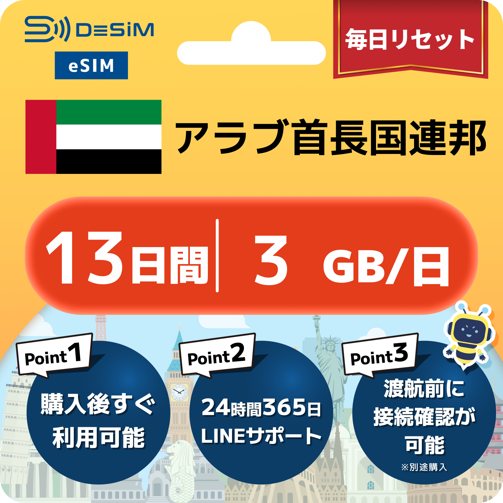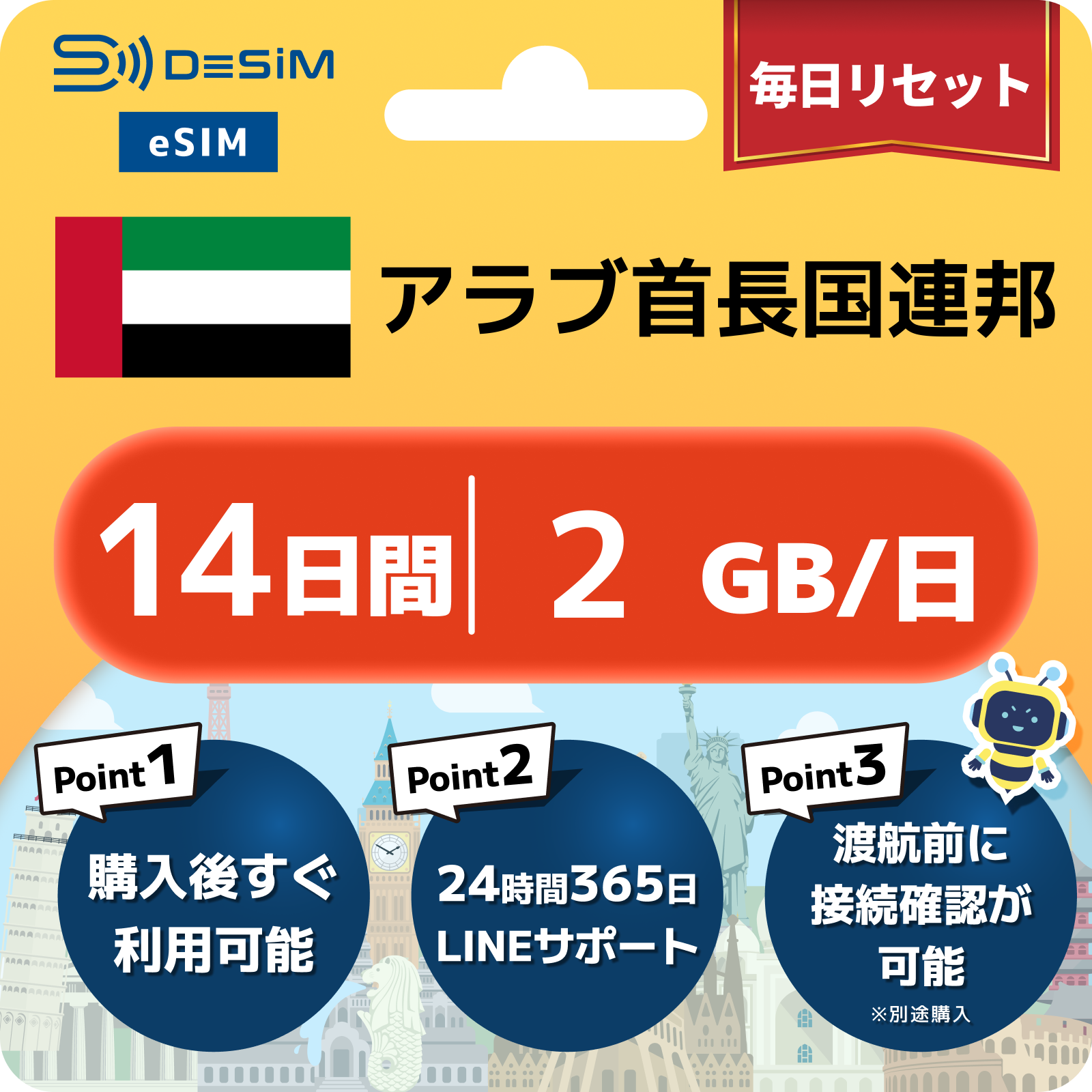 アラブ首長国連邦 eSIM(11~20日間)500MB~50GB選択可能 即日開通 テザリング対応